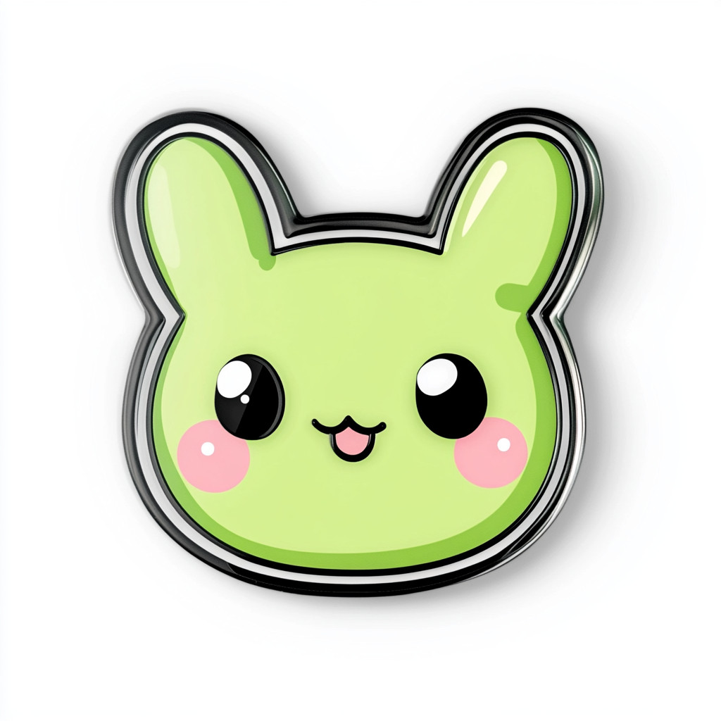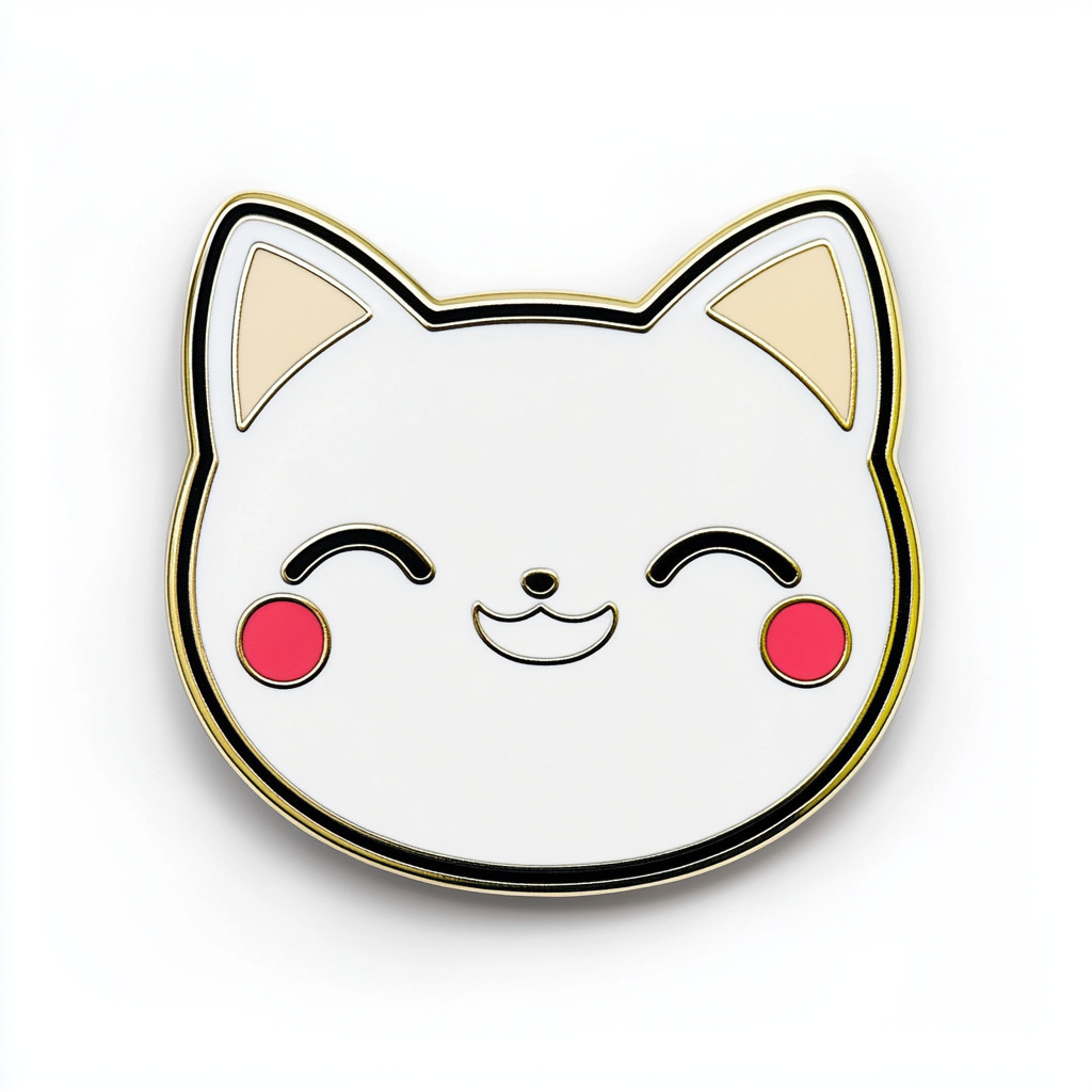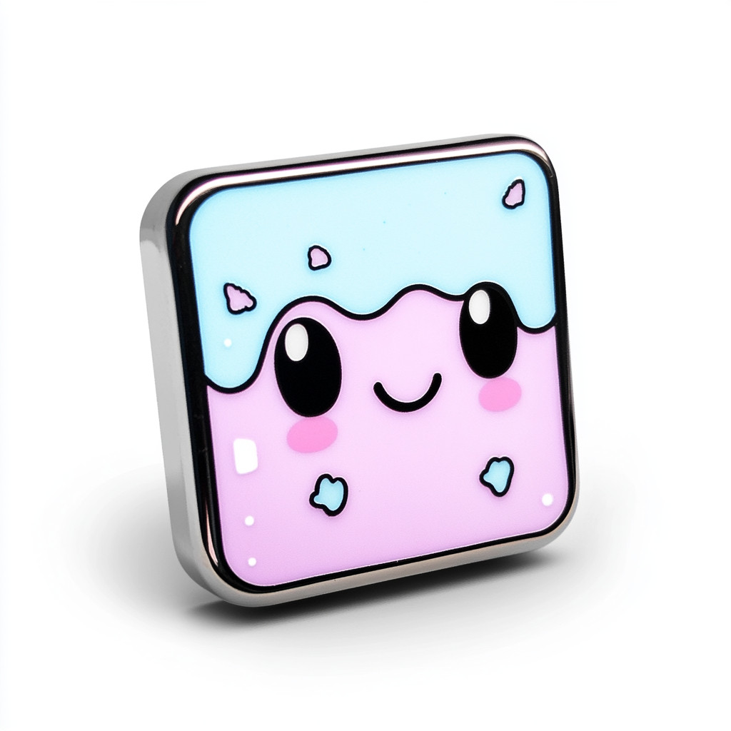 Turn the subject in the attached image into a kawaii enamel pin. Use glossy metal outlines and vibrant enamel fill. No extra added features. Square mockup format. White background. --v 6.1 --s 50 --raw