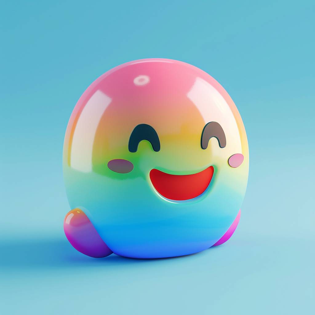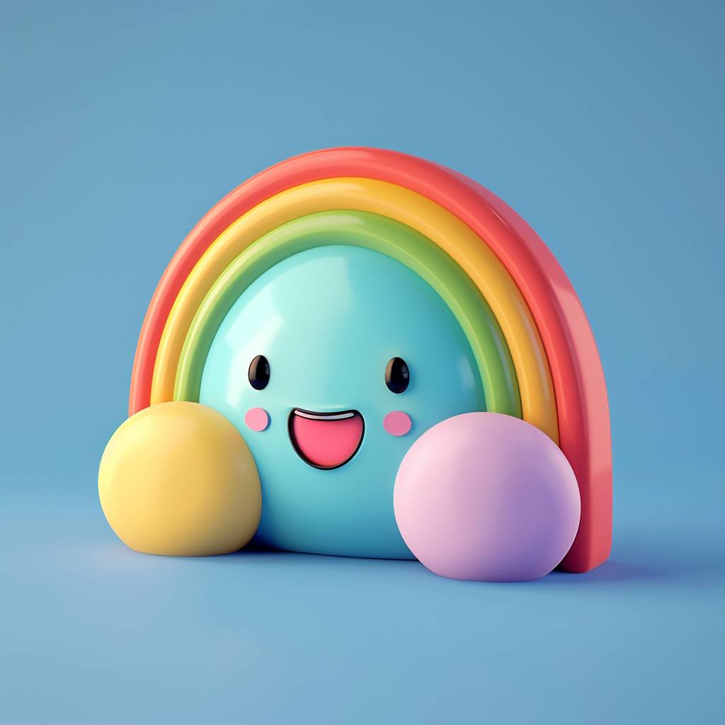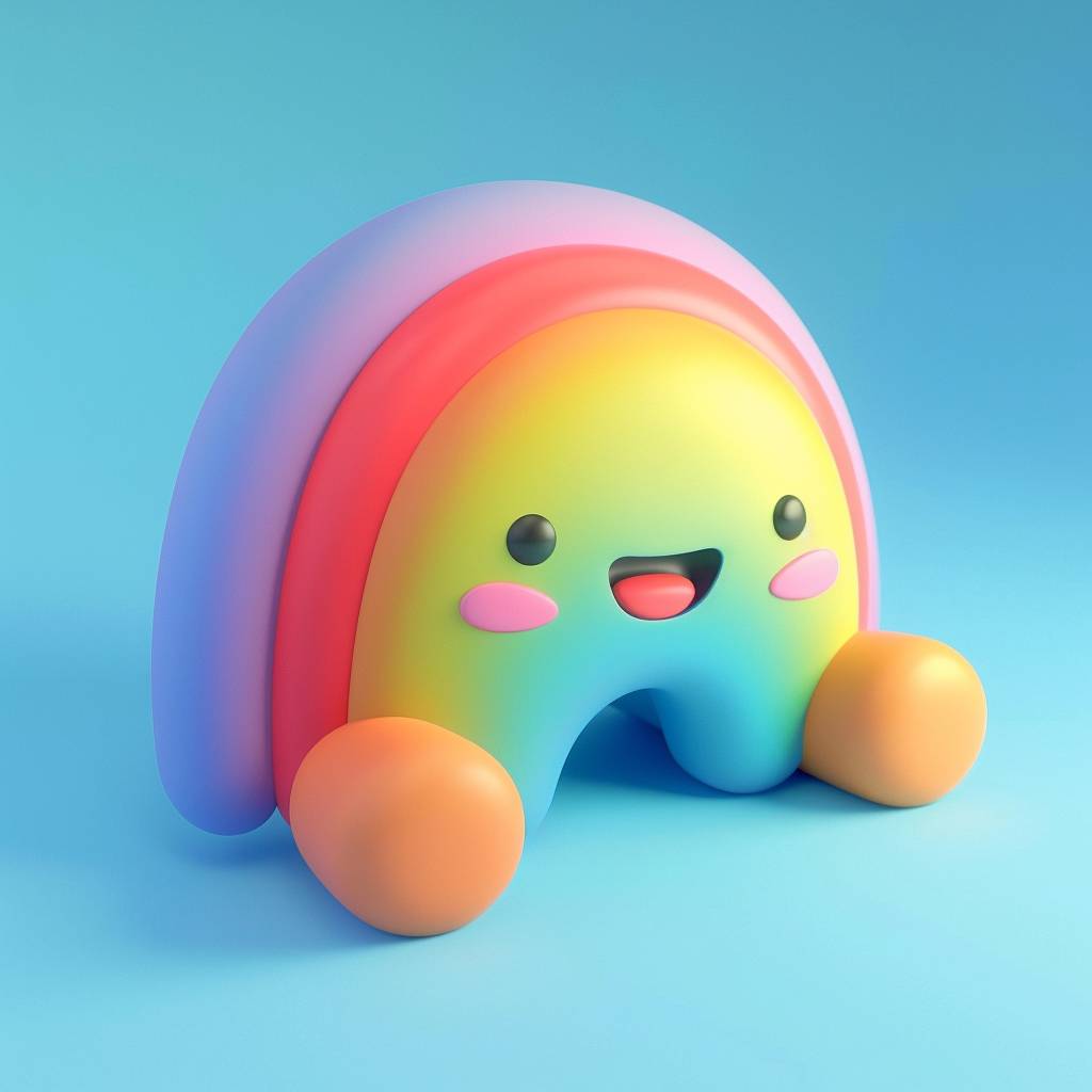 Tiny cute isometric rainbow emoji with soft lighting and pastel colors on a blue background.