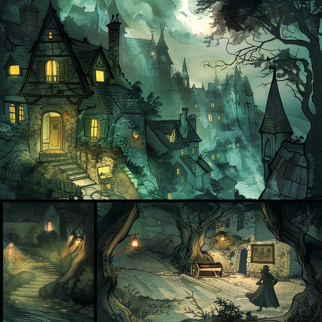 Bandes dessinées, storyboards d'animation, illustrations de livres pour enfants, art conceptuel, affiches d'événements culturels.--Sref 3000914647 --v 6.0