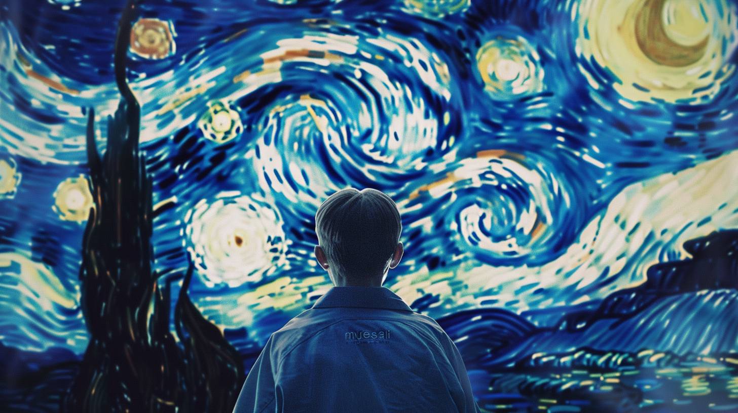 A movie poster combining Sam from Atypical with Van Gogh's Starry Night, titled 'musesai'.