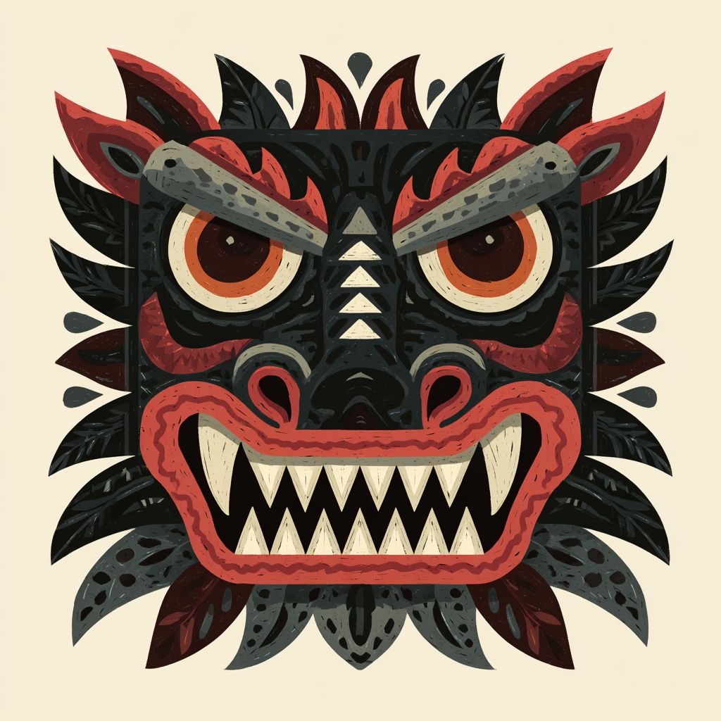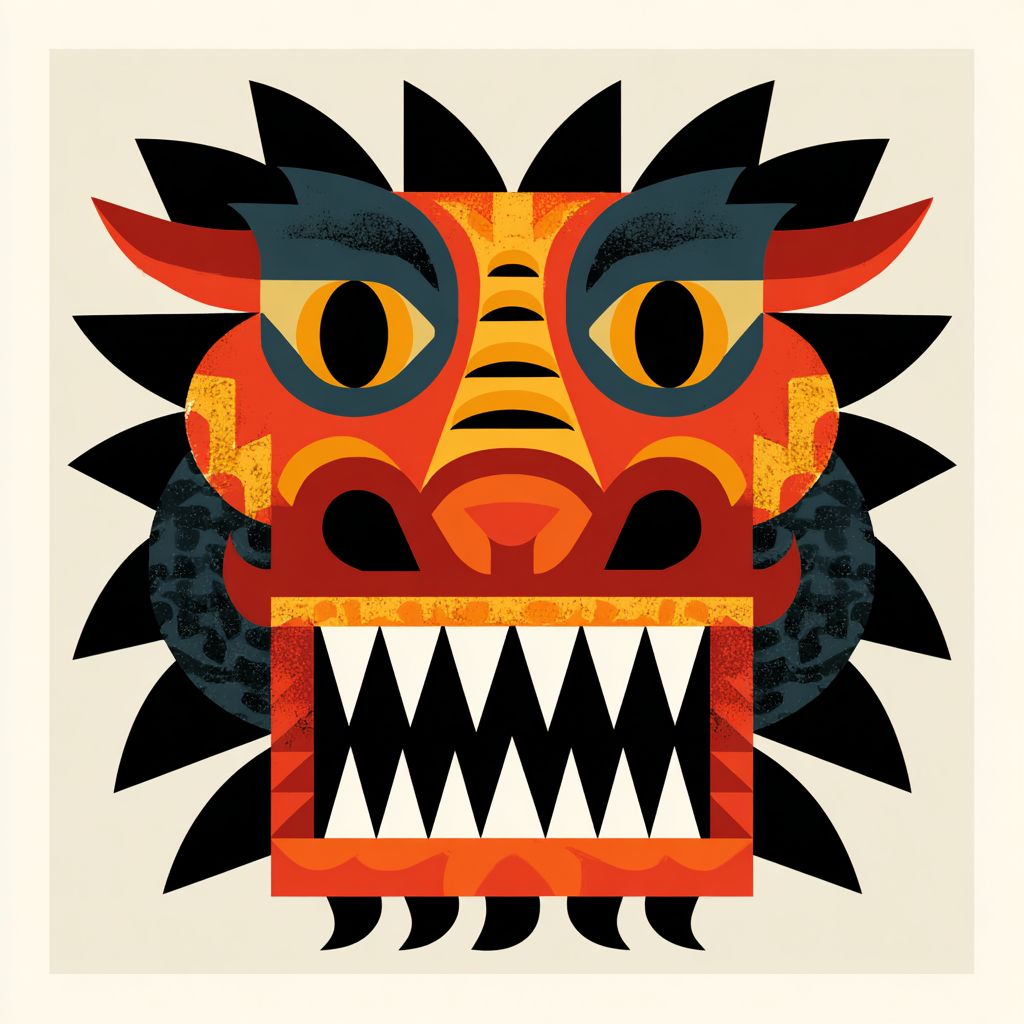 Create a high-resolution illustration of a dragon icon in the style of a bold primitive animal mask