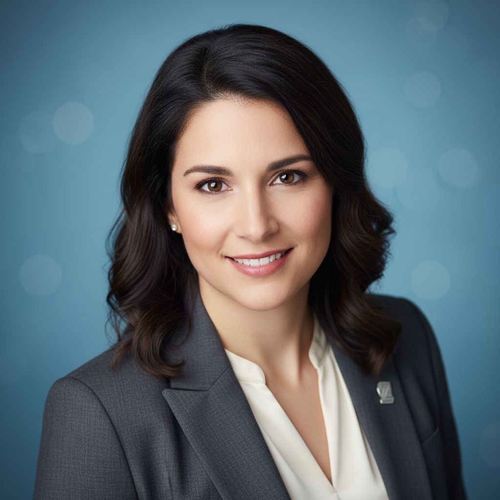 A professional, high-resolution personal portrait photo that accurately retains the facial structure, identity, and key features of the subject within the input image. The composition is a bust shot above the chest, with ample white space and negative space above the head, ensuring that the head is not cropped. The posture conveys confidence, professionalism, and an additional emotion. The subject is styled in a professional studio photography style, wearing a specific outfit. The background is a designated background color. Taken from a high angle, the lighting is bright, transparent, and softly diffused studio light, gently illuminating the face and creating subtle catchlights in the eyes, conveying a clear and crisp feeling. Captured with an 85mm f/1.8 lens, it has a shallow depth of field effect with the focus precisely on the eyes, and a beautifully soft and blurred background. The details are clear, with the texture of the outfit, defined strands of hair, and the natural, realistic skin texture all visible. The overall atmosphere exudes confidence, professionalism, and approachability. The color grading has a clean, bright cinematic feel, with subtle warmth and balanced tones, ensuring a refined and modern appearance.