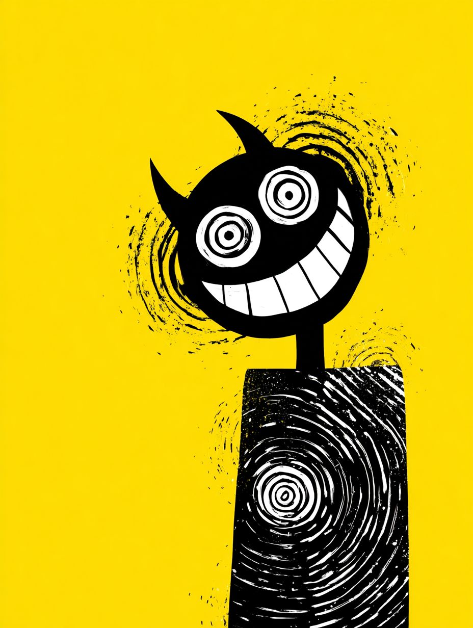 Create in the style of Riku Demonsen, Michael Deforge, and Joel Pett