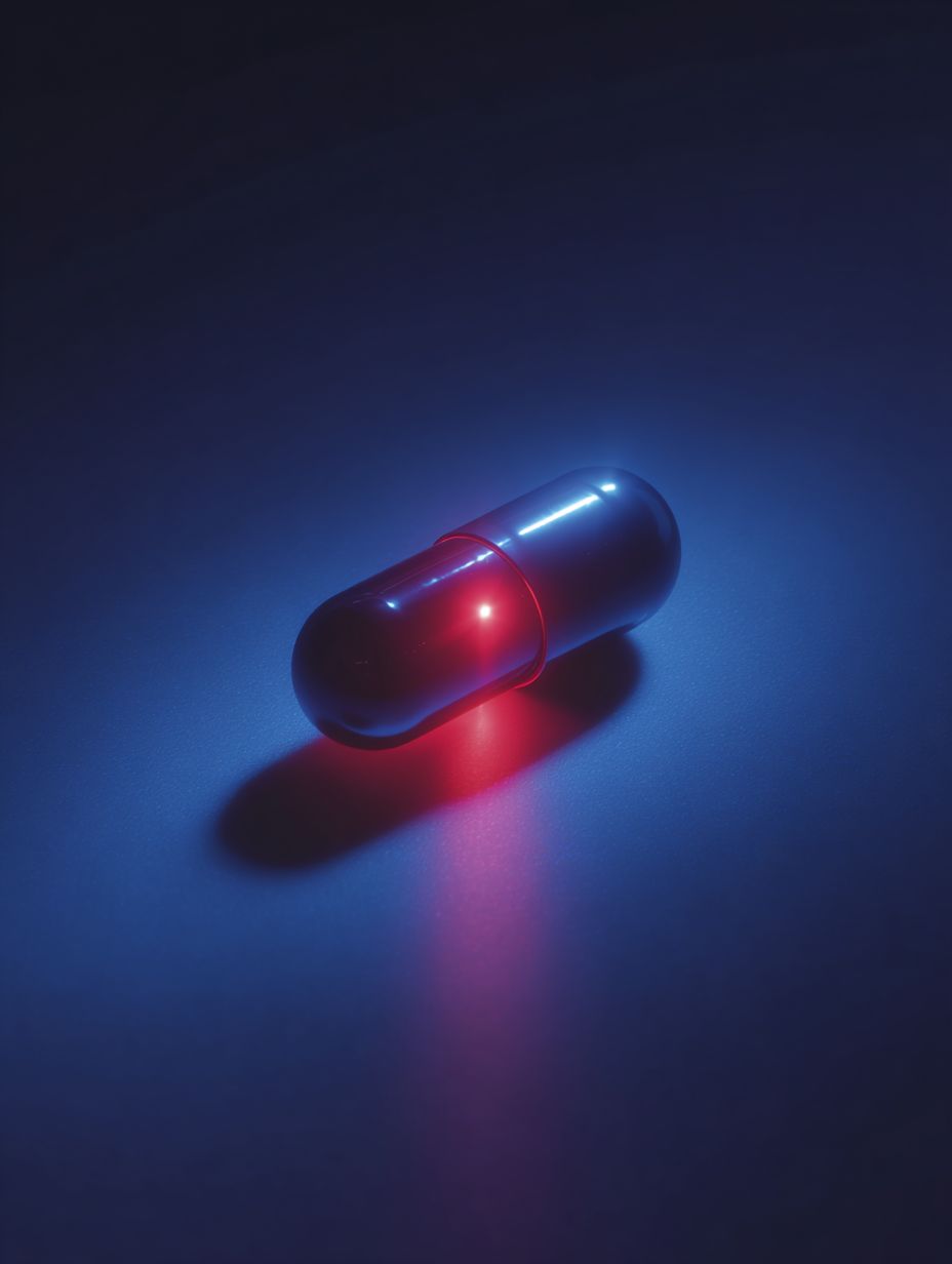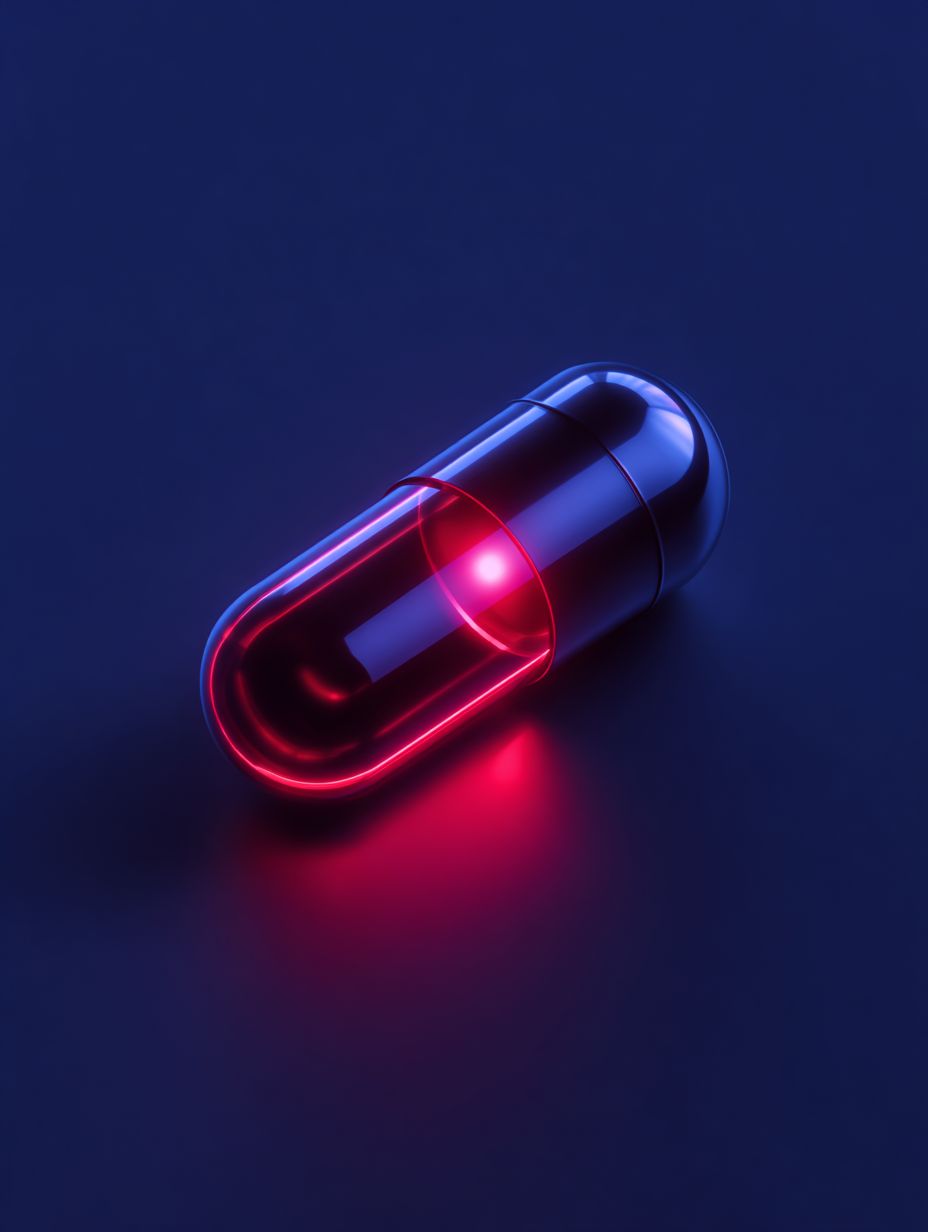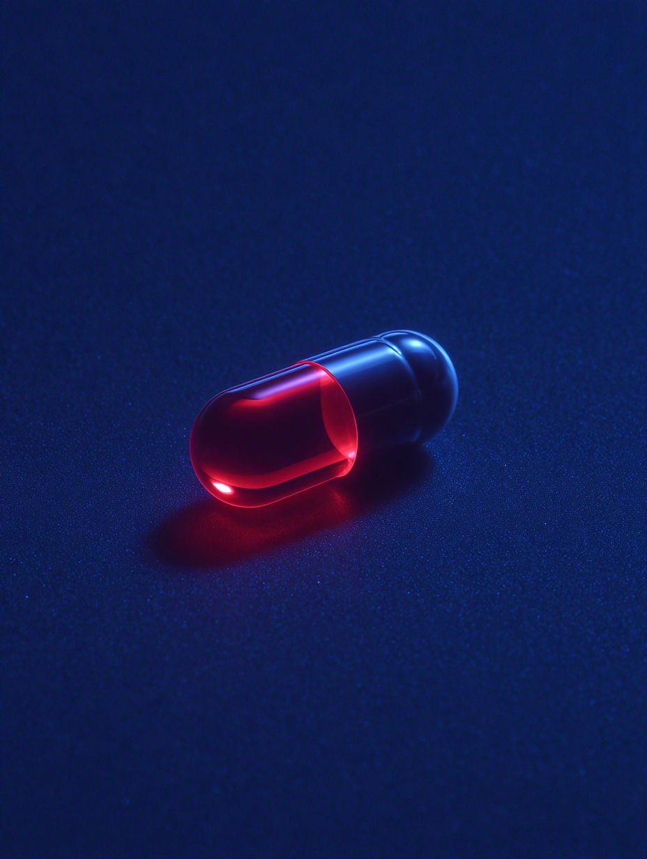 An red-blu capsule of Fenbid. --ar 3:4 --profile vtorb37 --s 750