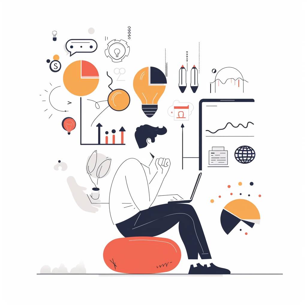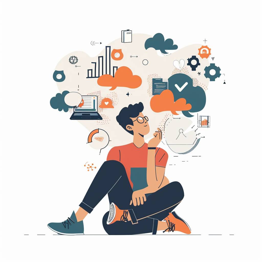 A clean vector illustration depicting thinking about data, with a white background, suitable for a tech blog and interesting composition.