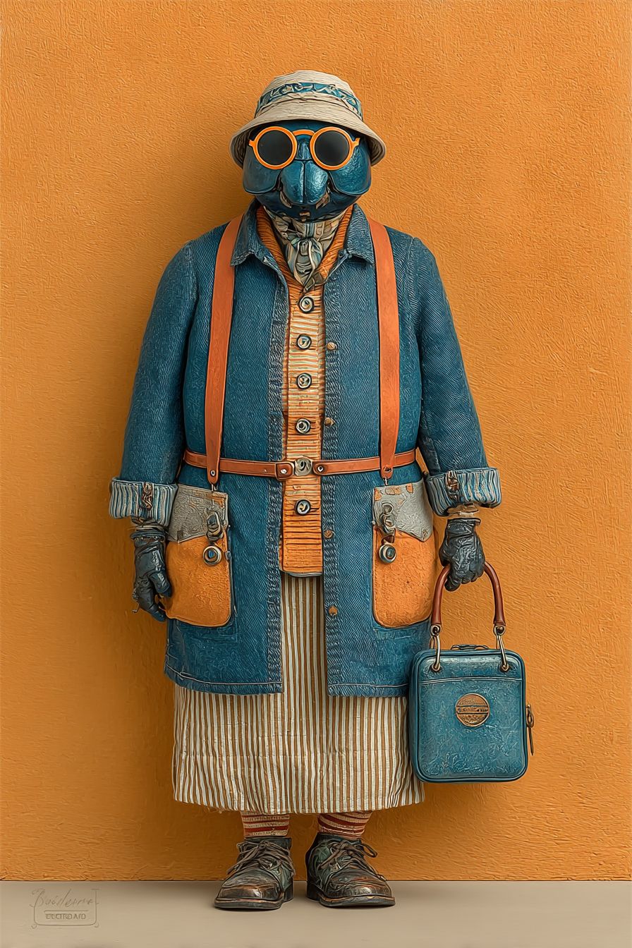 A personified beetle dressed in modern street fashion