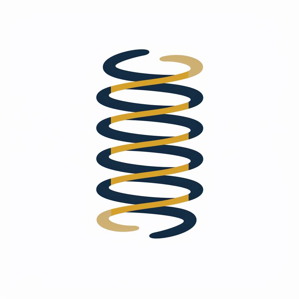 Flat modern traditional logo, simple logo of a metal spring, white background, navy and gold, no shading, no shadows, vector, minimal design, high contrast --v 6.0