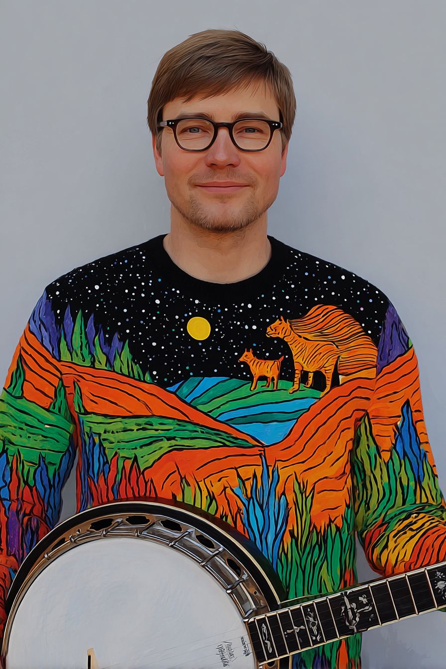 Folk music superhero with a sharp banjo and a deadly harmonica
