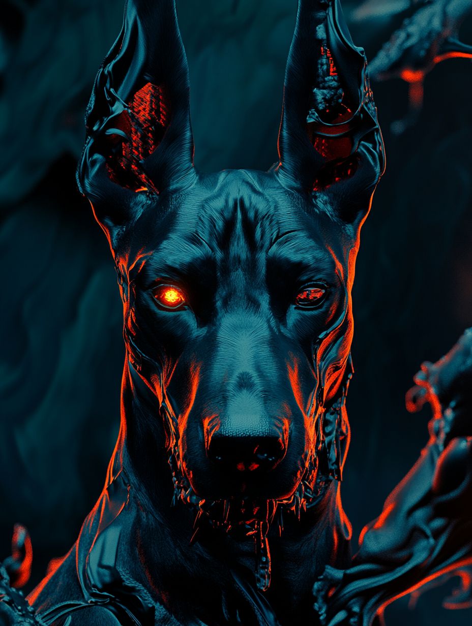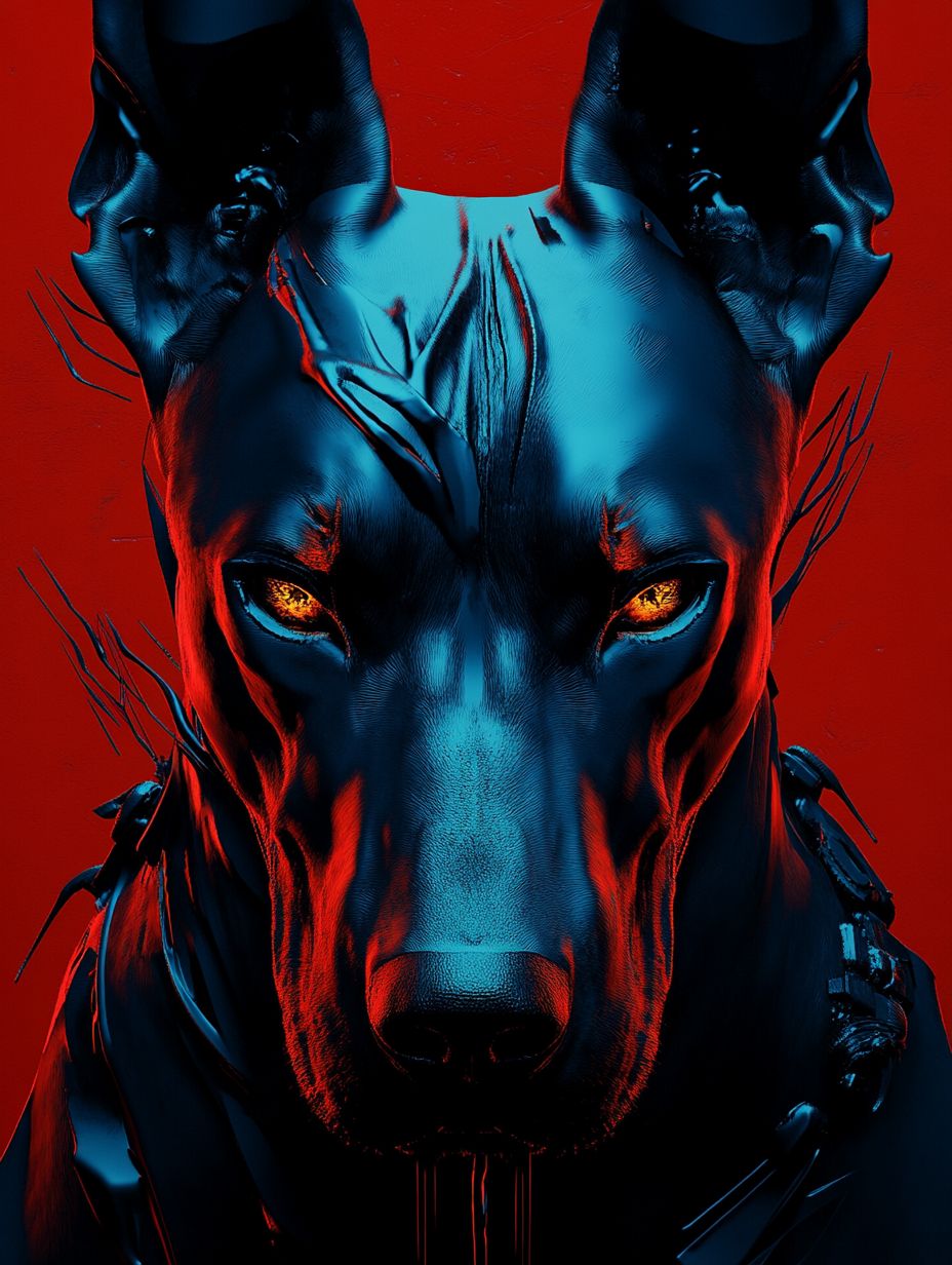 A minimalism modern book cover of black dog. A large doberman dog face is the focus of the picture. abstract line and symbolism of jinx --ar 3:4 --sref 3323562529 --v 6.1