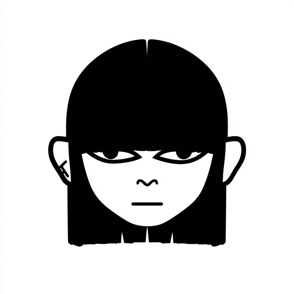 symmetrical, emo girl head, vector, black and white line, stylised, hair and fringe, clean --raw --sref <https://s.mj.run/VFt3Gxp1aNo> <https://s.mj.run/owk3Q8w_Glw> <https://s.mj.run/NUxWsS6baYA> --oref <https://s.mj.run/aZwlvdNq3is> --stylize 0 --v 7.0 --p yki8oxb