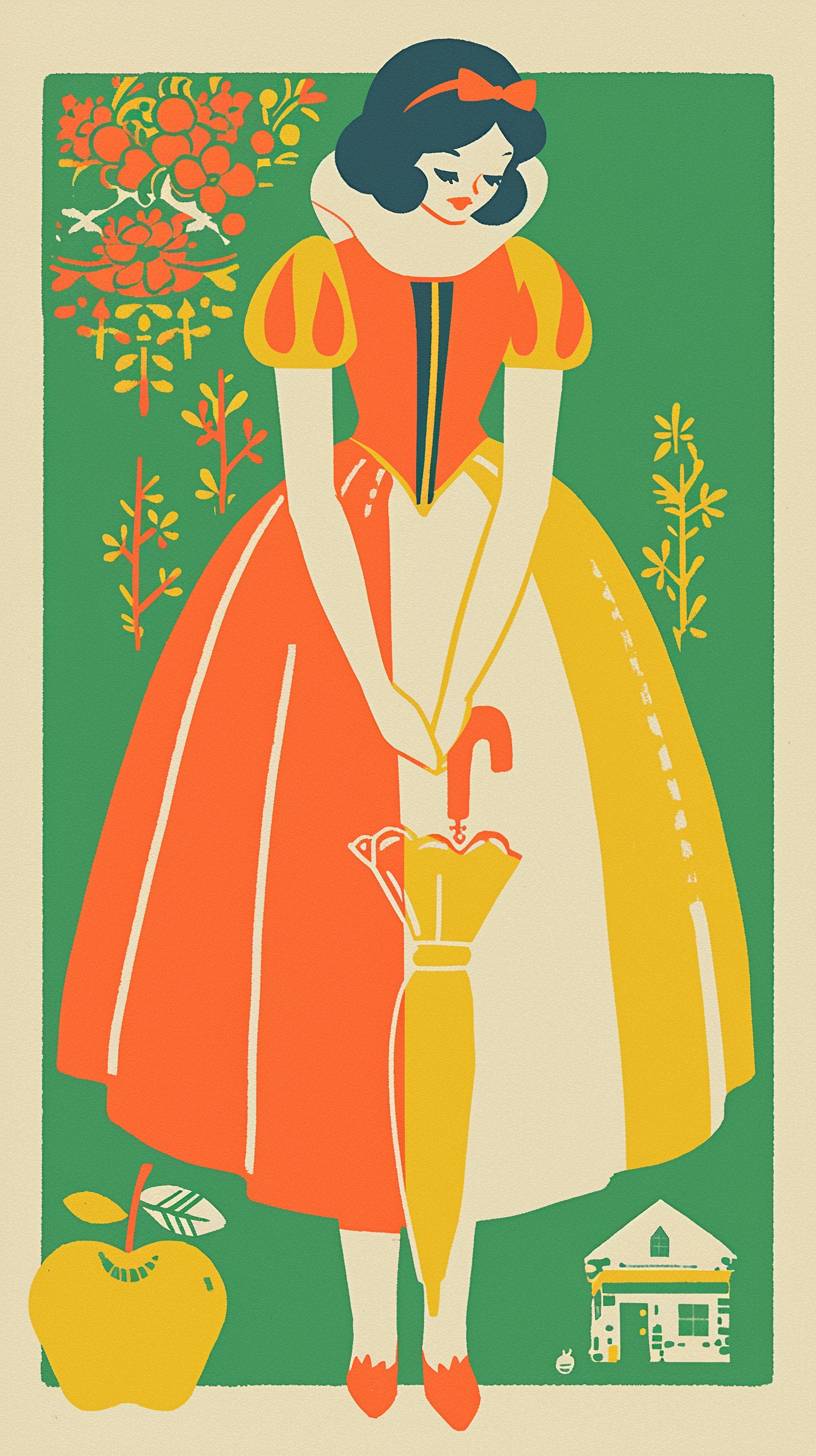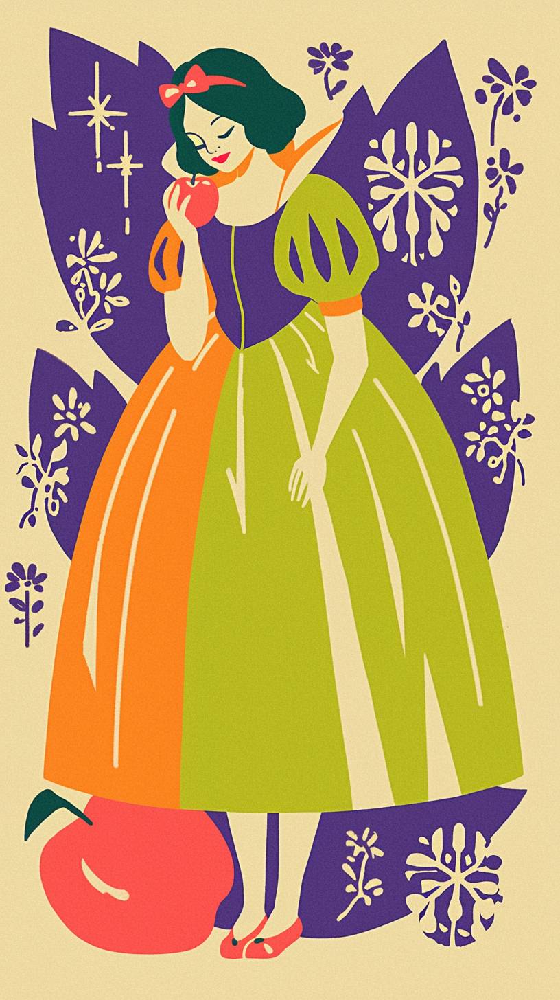 A simple drawing of Snow White, in the style of Allie Brosh with simple lines, flat colors and a stick figure, minimalistic, simple background --ar 9:16 --style raw --sref 3740030777 --niji 6