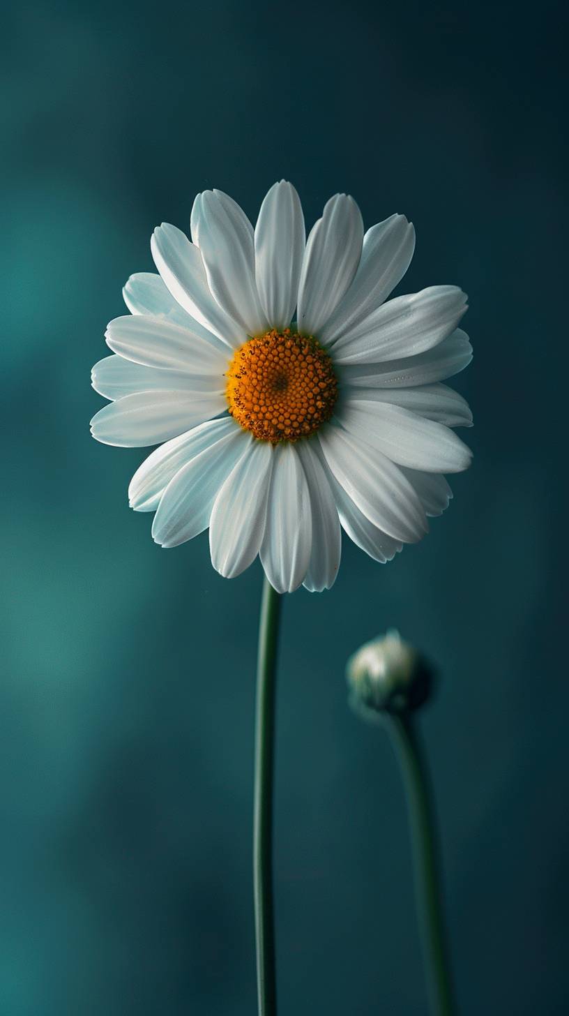A small daisy, phone wallpaper, clean background, background solid color, HD quality, realistic details, HD photography pictures --ar 9:16 --stylize 250 --v 6.0