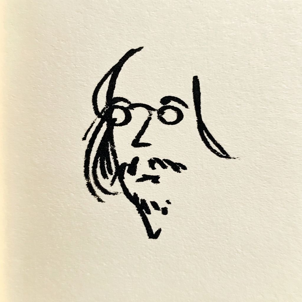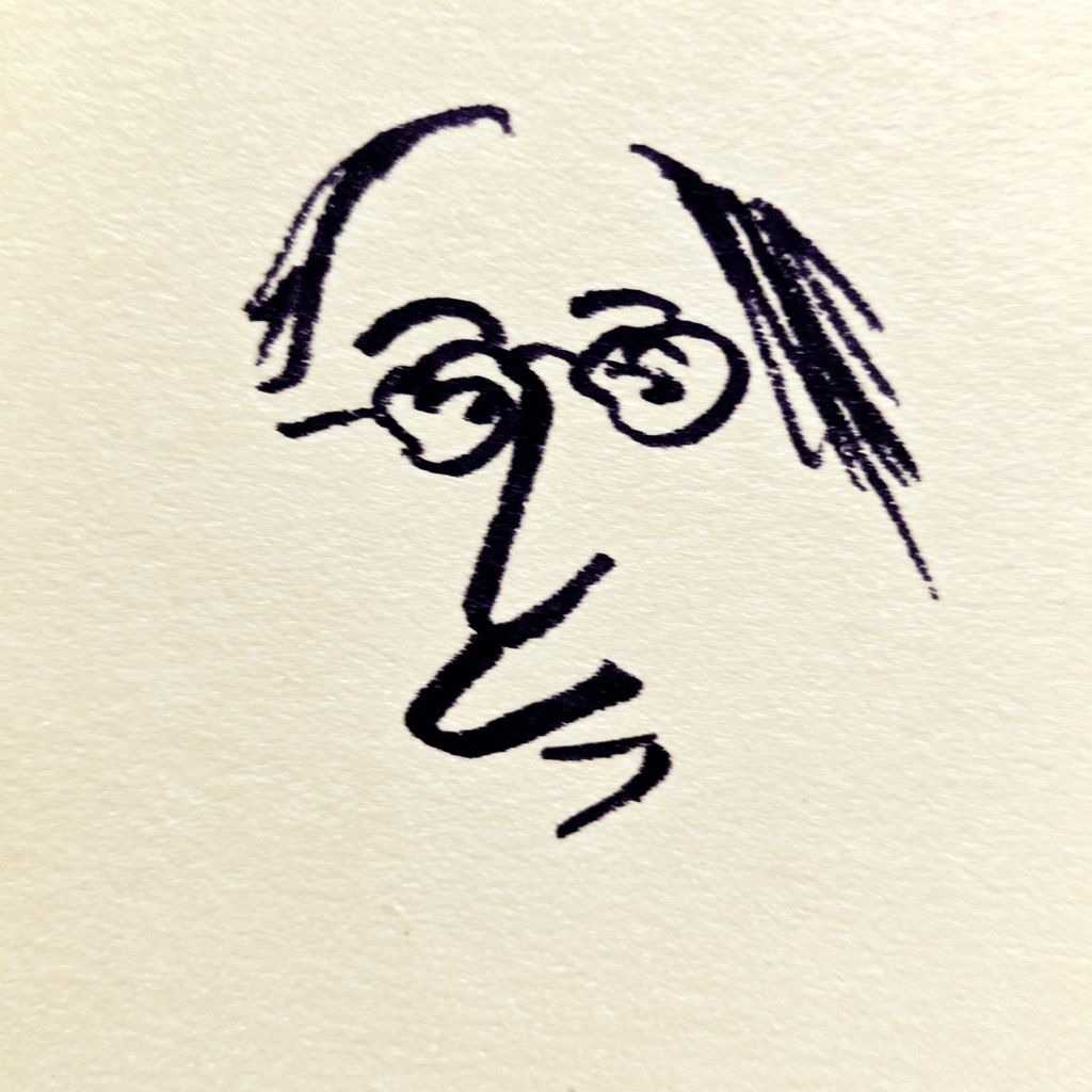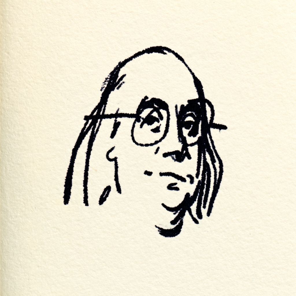 Iconic line drawing image of Ben Franklin