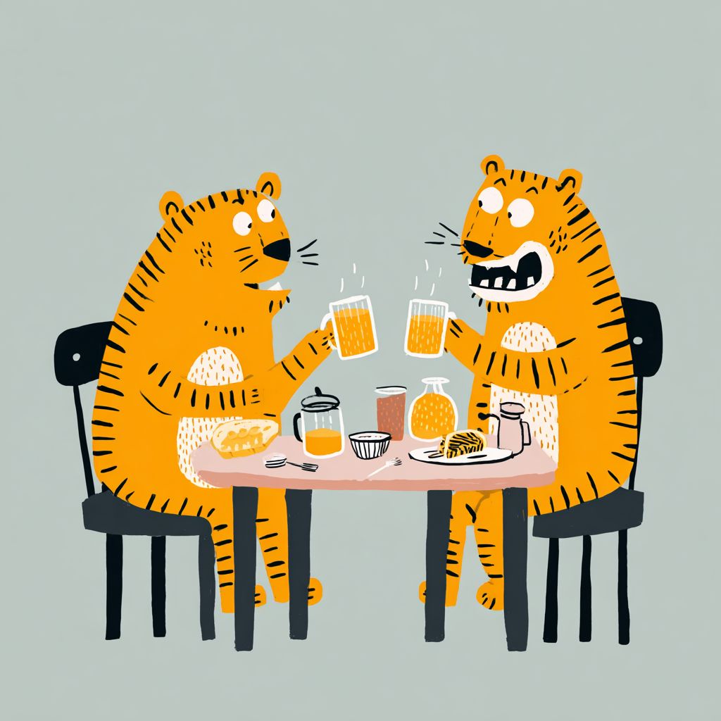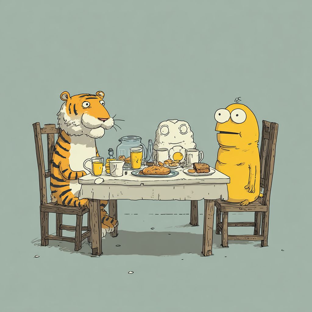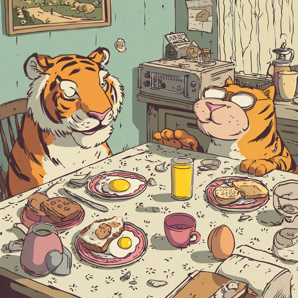 Tiger breakfast in quirky childish style
