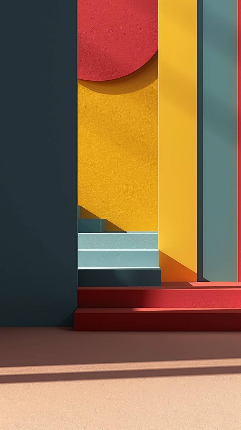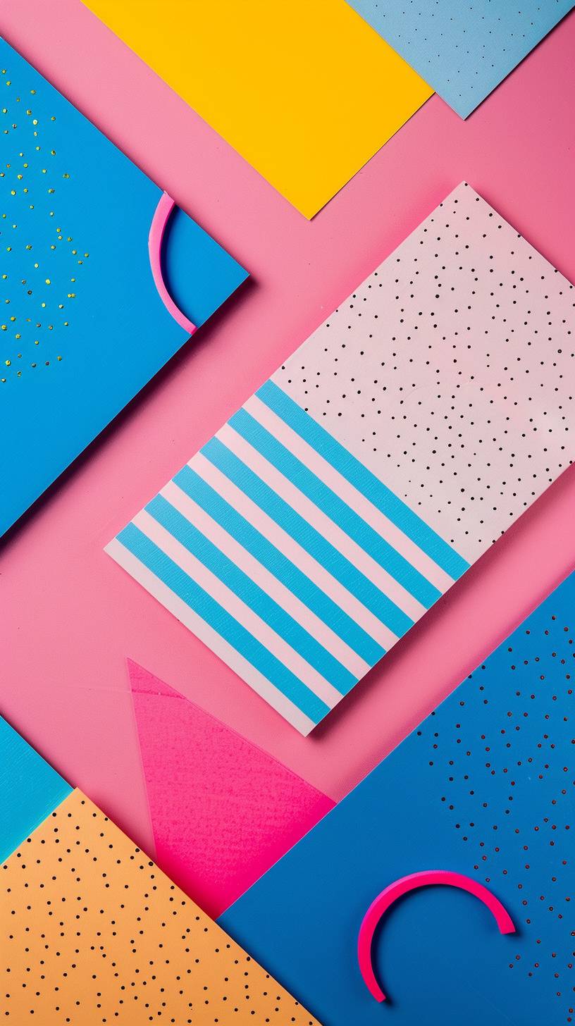 Minimalist background with simple geometric shapes, Memphis colors, and copy space.