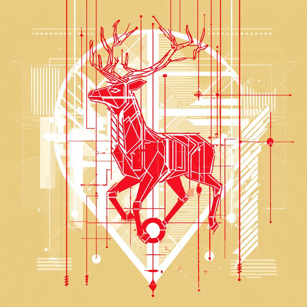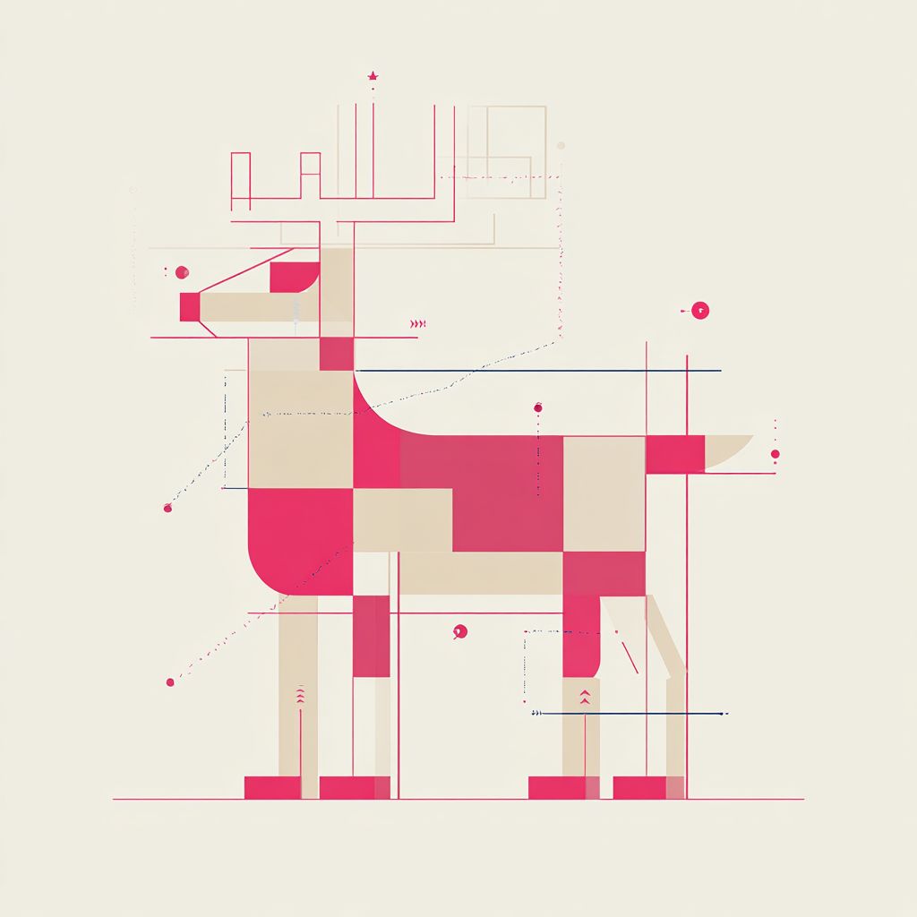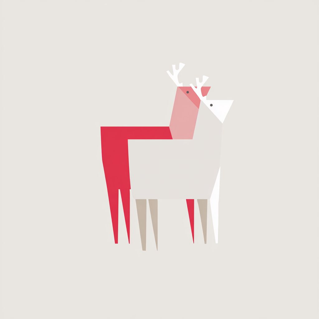 Minimalist Christmas illustration of a geometric reindeer, Scandinavian design, limited color palette of red, white and beige, clean lines, ample copy space, flat lay. Trending on Adobe Stock, vector illustration --chaos 30 --stylize 0