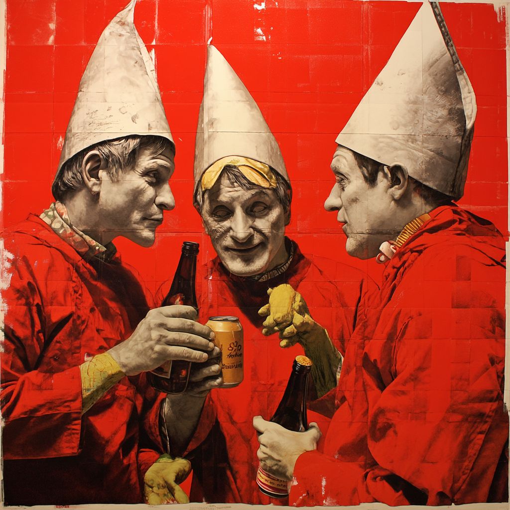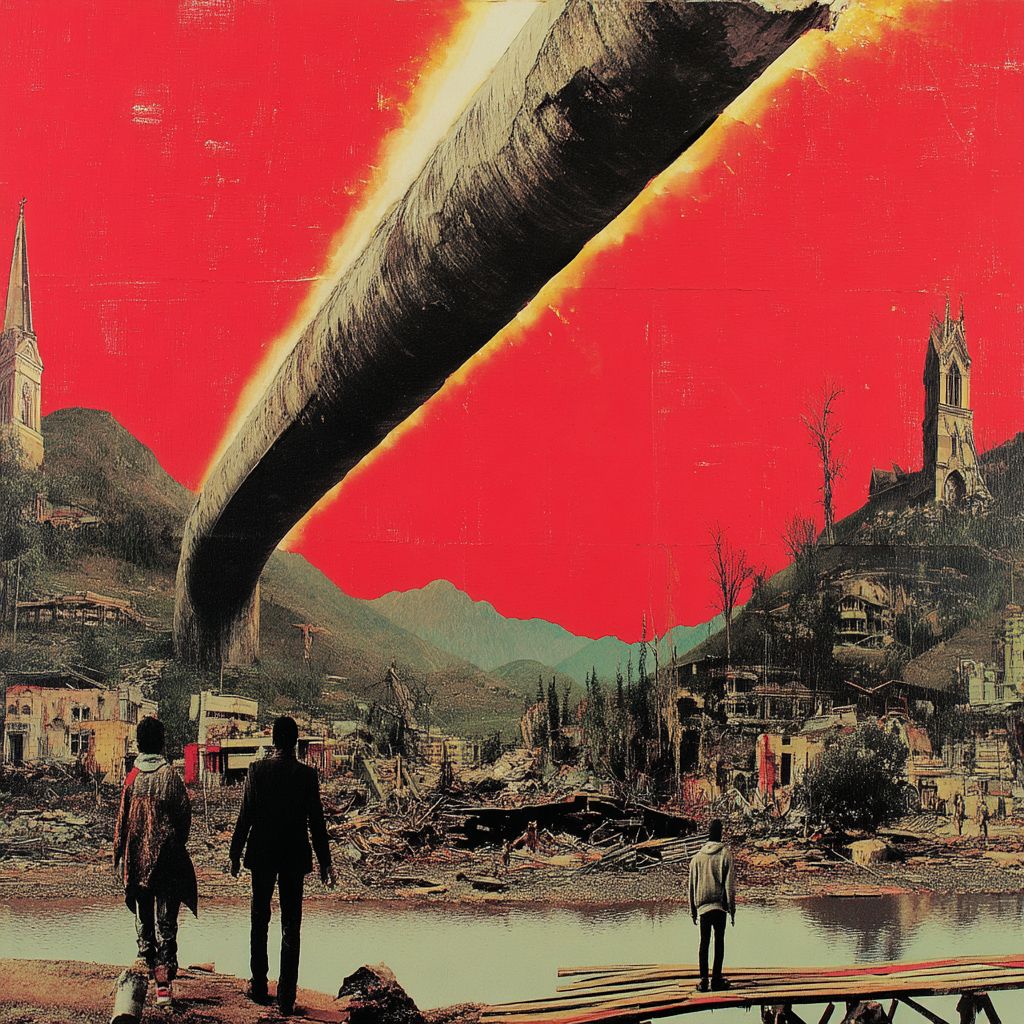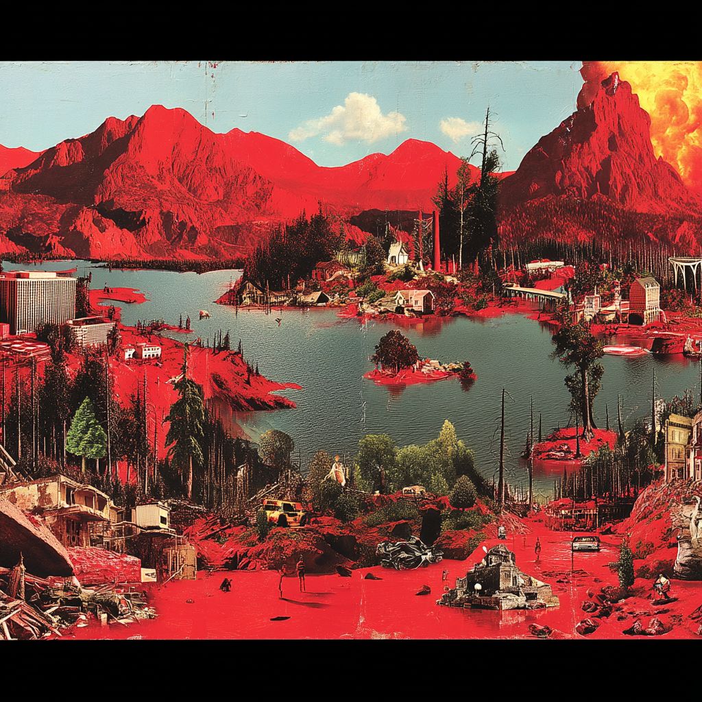 abandoning reality recursively, first point of view, surreal paradox plot, renovated from Banxy to Hieronimus Bosch, red pallet --no blurry --chaos 35 --quality 2 --sref 3030290858 --sv 4 --v 7.0