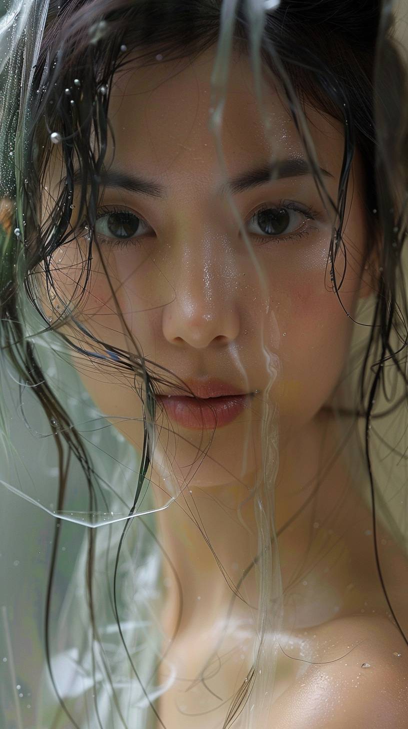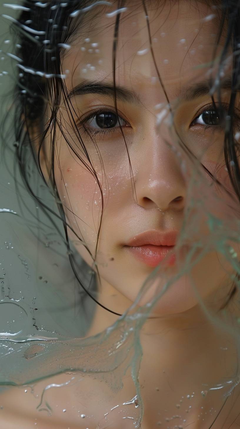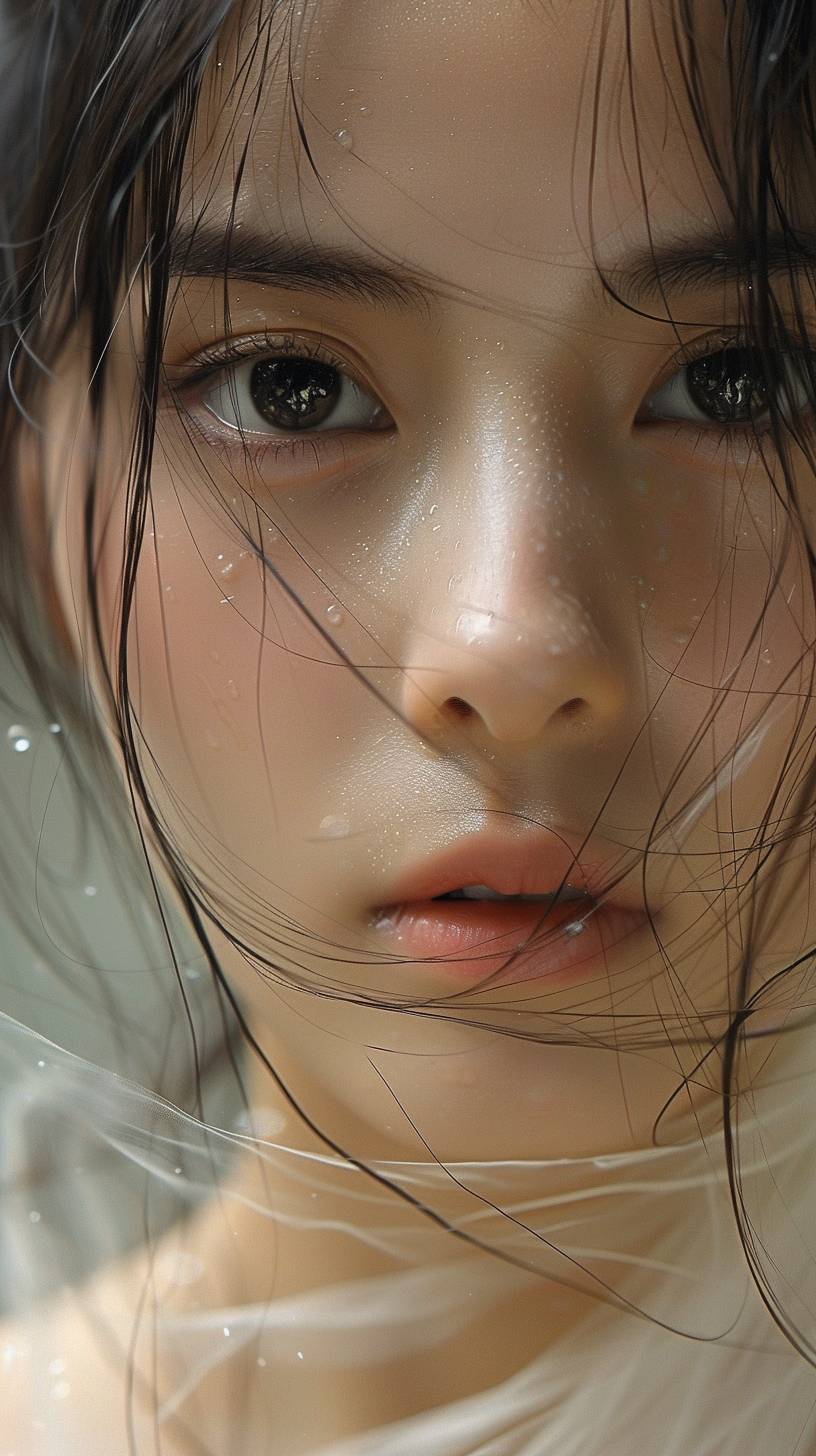 Dewy Skin makeup, Dewy Skin makeup, a Chinese girl with black hair, black pupils, wearing a white Hanfu, shrouded in fairy mist, Medium Shot(MS), this 20-megapixel photo has an extremely detailed face, hands, feet, and fine details. It has perfect anatomy, proportions, skin texture, vision, color and character, delicate facial features, gentle gaze with soft lighting, in the style of Helleu Amano, Artgerm and Harriet Lee Merrion, translucent fluorescence, glowing particles, optical flashes, dissolving and disappearing into particles, Bright and colorful, bright background, rich detail, face close-up, holographic halo, Psychedelic, Chinese style, Fine skin, Real skin, Real skin details, Clear pores and fine lines, Light reflection and Refraction, Ultra clear, 3d, blender, oc, c4d --ar 9:16 --sref 365794279 --stylize 750 --v 6.0