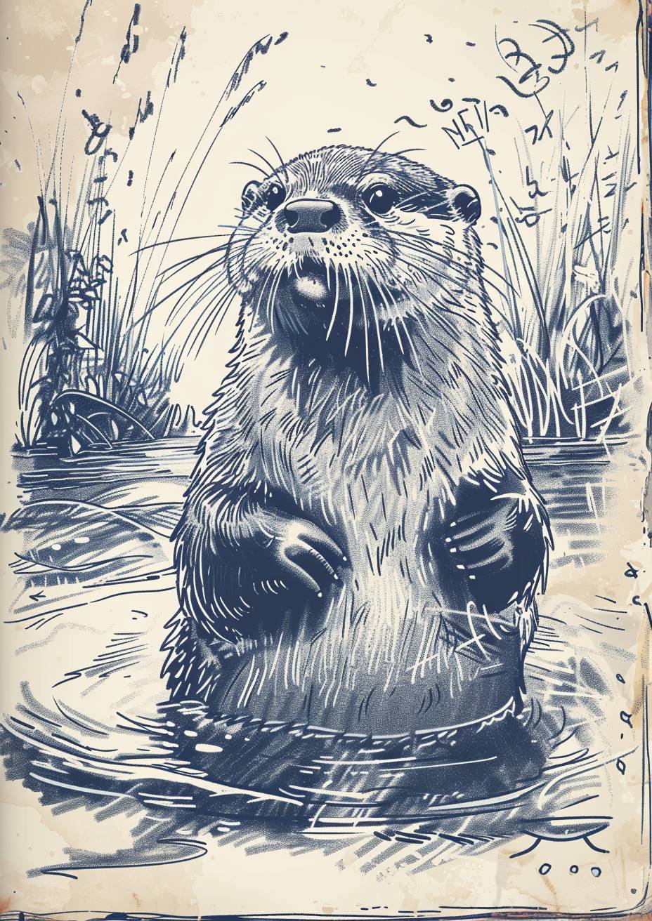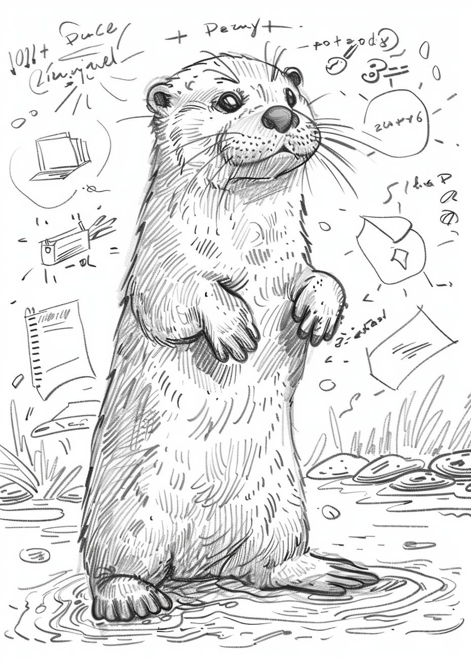 vector business doodles with diagrams, a playful otter in a river, spiral bound notebook --ar 5:7 --stylize 250 --v 6.0