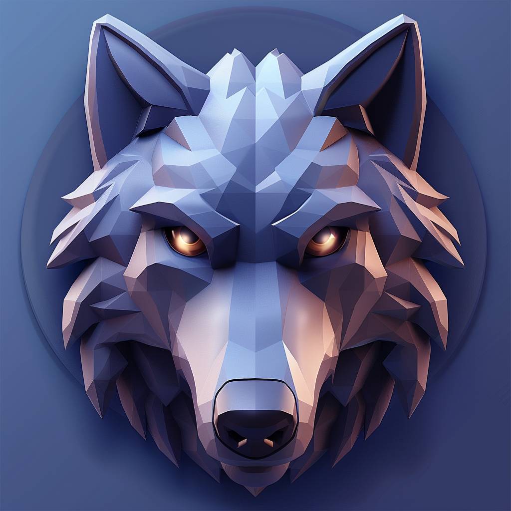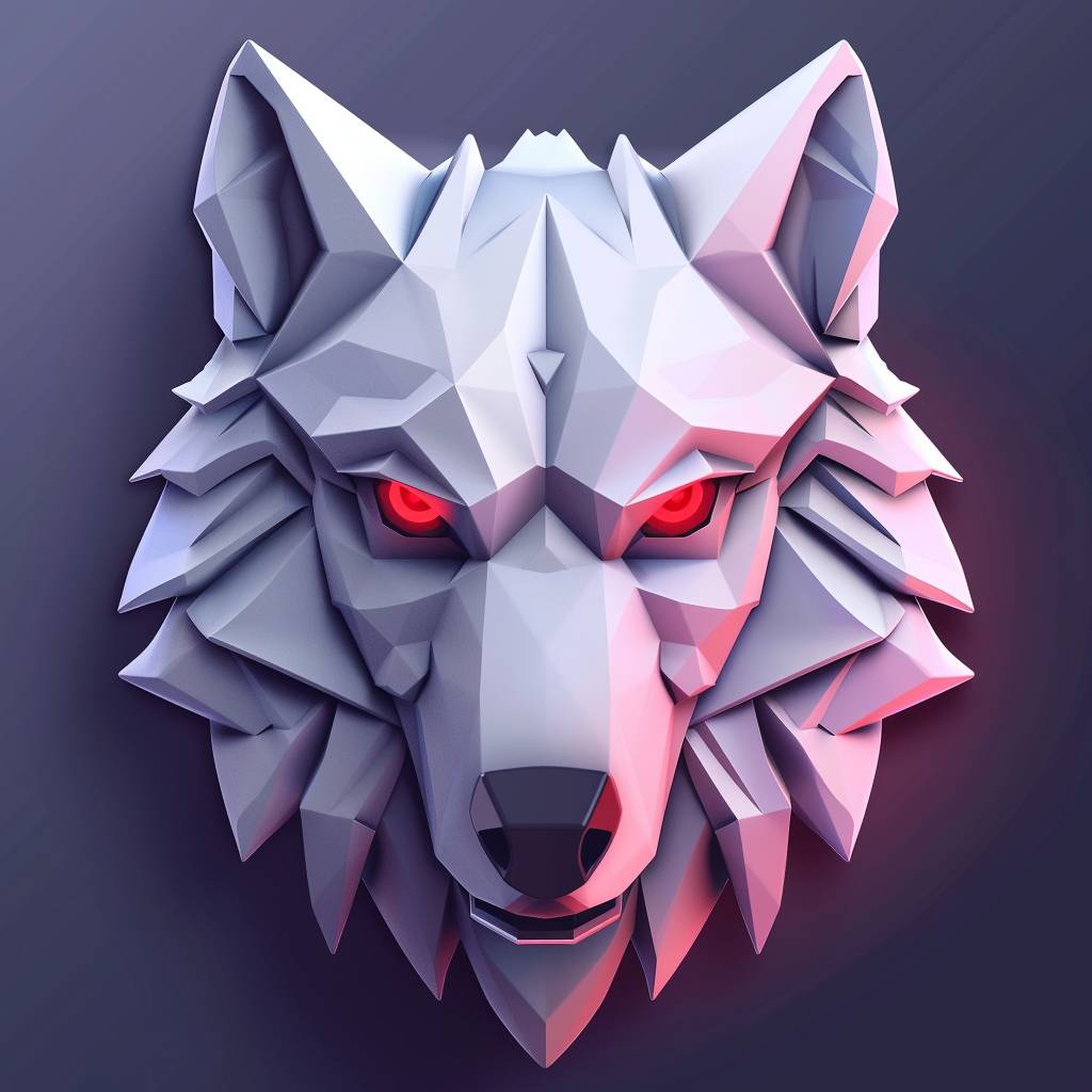 Wolf head, front view, application, clean UI icon app logo 3D, esports logo