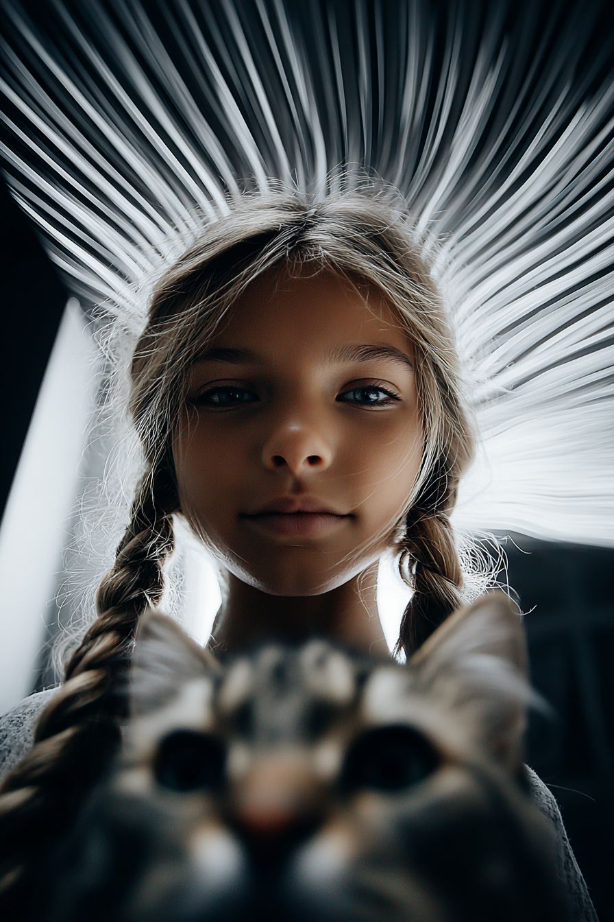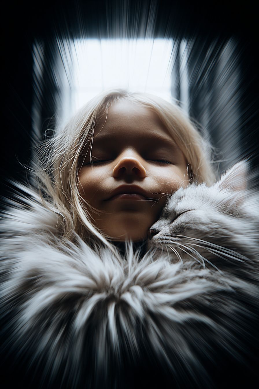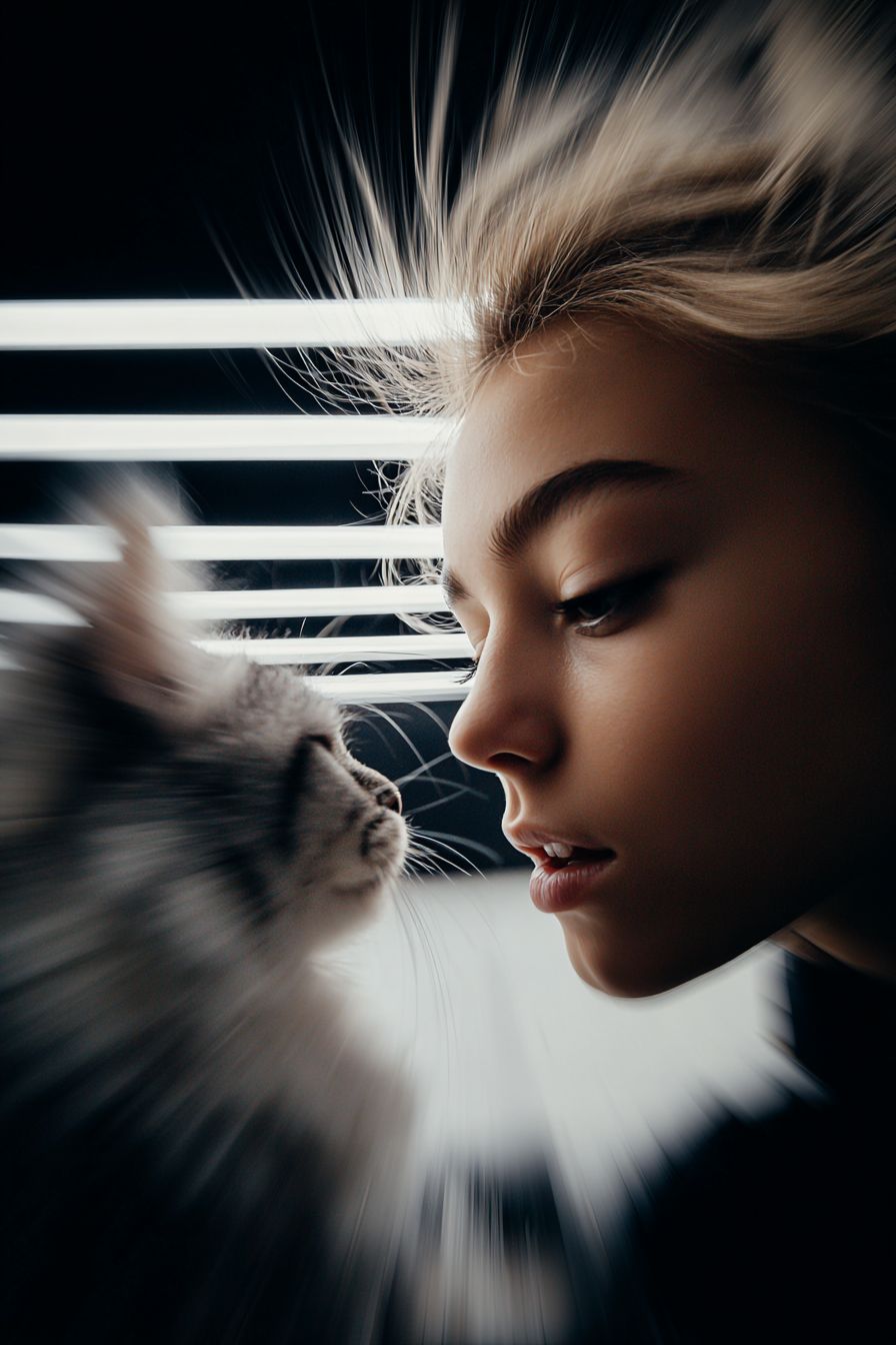 A young beautiful girl and a cute fluffy cat --sref 473407894 --ar 2:3