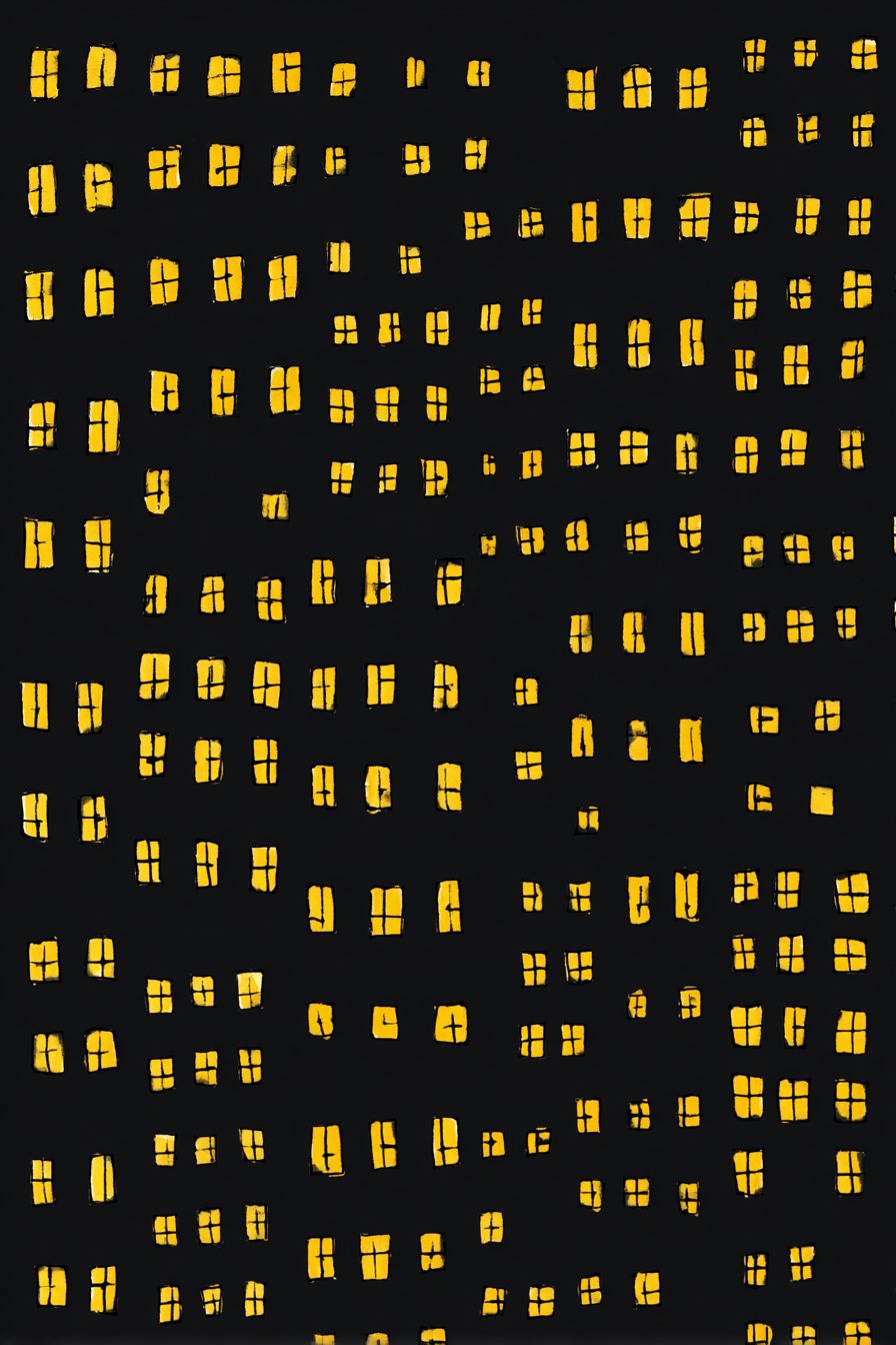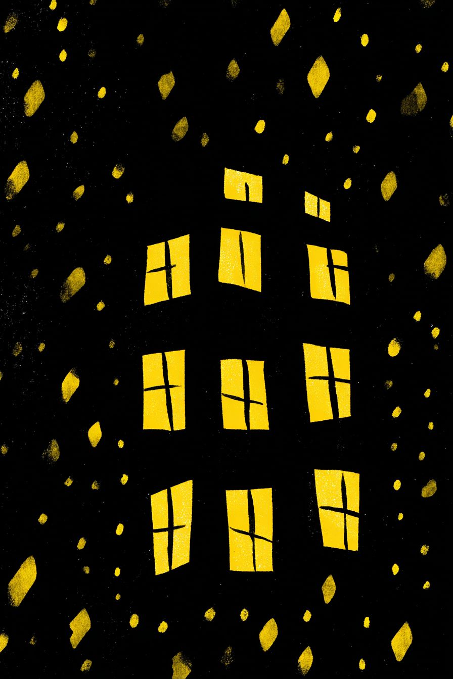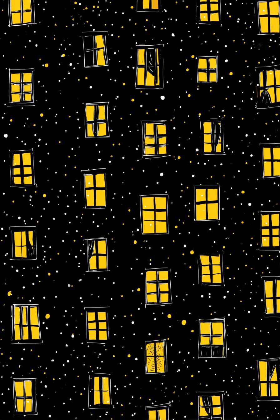 Hand-drawn yellow windows on a black night background