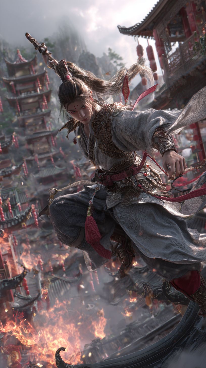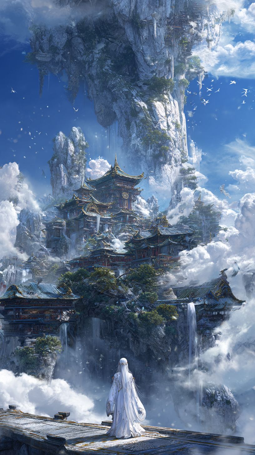 A fantastical immortal fantasy scene with authentic pure Chinese Oriental aesthetics, random Chinese classical characters, random core scenes, random traditional costumes, random compositions, random texture details, random weather with immortal fantasy artistic conception, Chinese national style aesthetics, extremely aesthetic and healing, highly visually impactful, film-level lighting and shadow, realistic style, master level work, domestic anime CG, ultimate details, 8k --no Japanese elements, Chinese characters, text --ar 9:16 --profile web8x6d h6uqt9w --s 50 --v 7.0 --raw