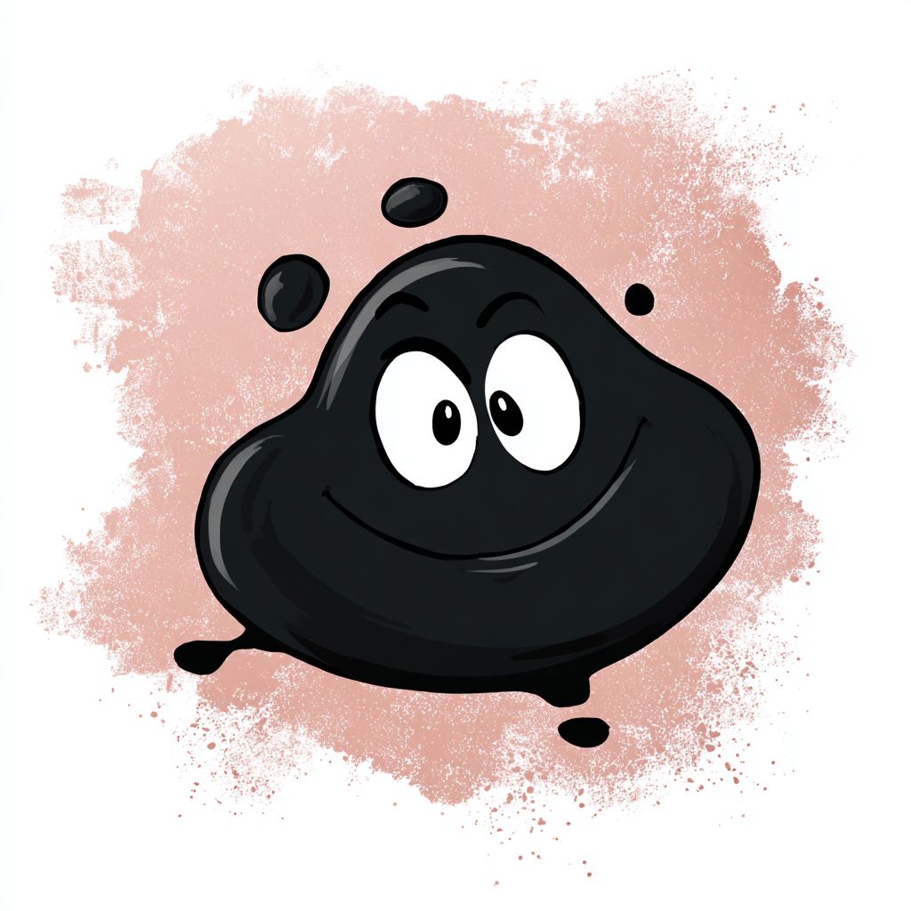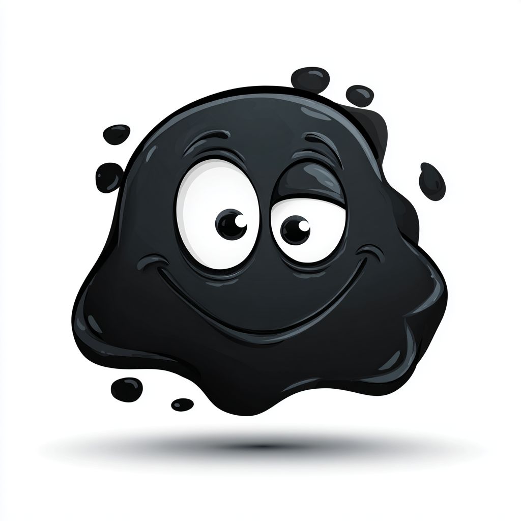 black blob cartoon character with a mischievous face