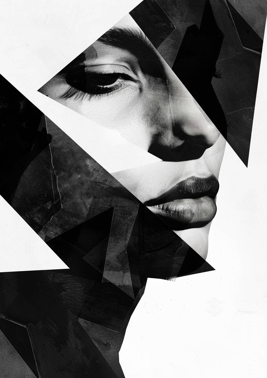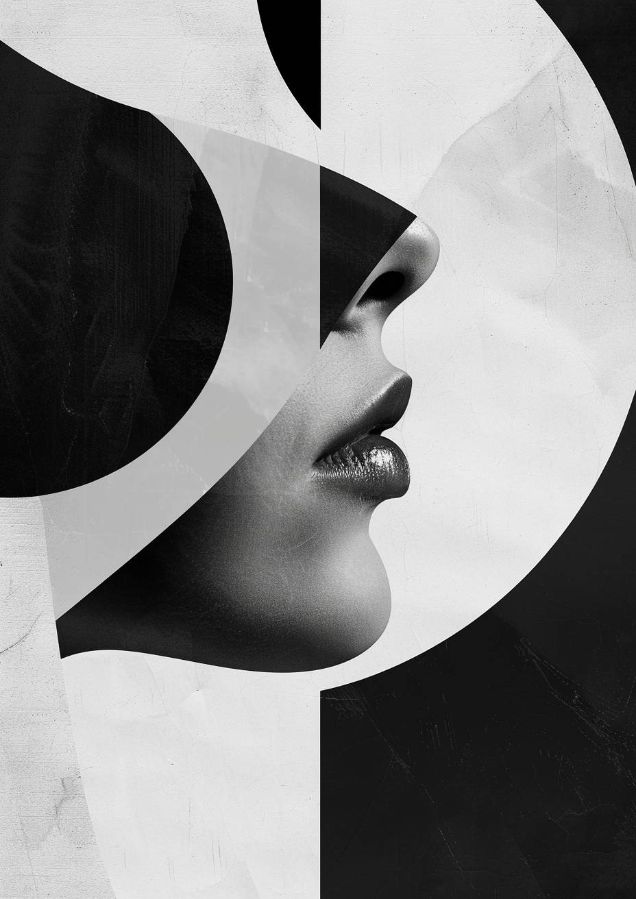 An abstract representation of PTSD, shame, guilt, and deep suffering through shapes, black and white, and minimalist design.