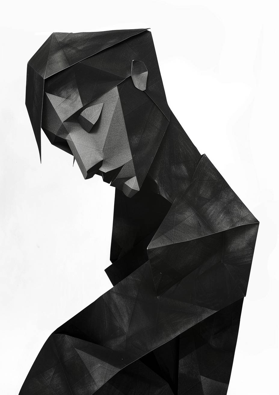 an abstract representation of PTSD, shame, guilt and quite suffering through shapes, black and white, minimalist --ar 5:7 --v 6.0