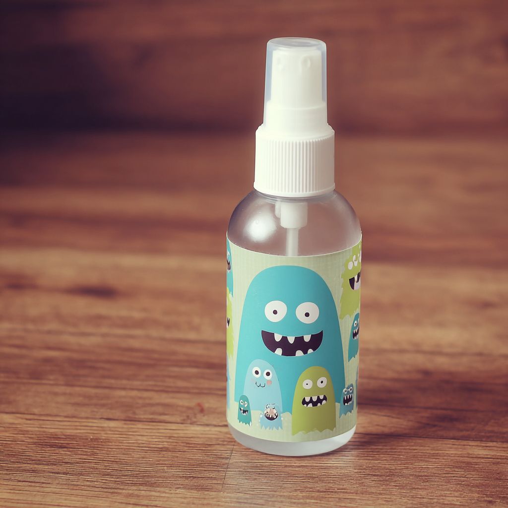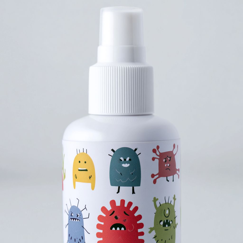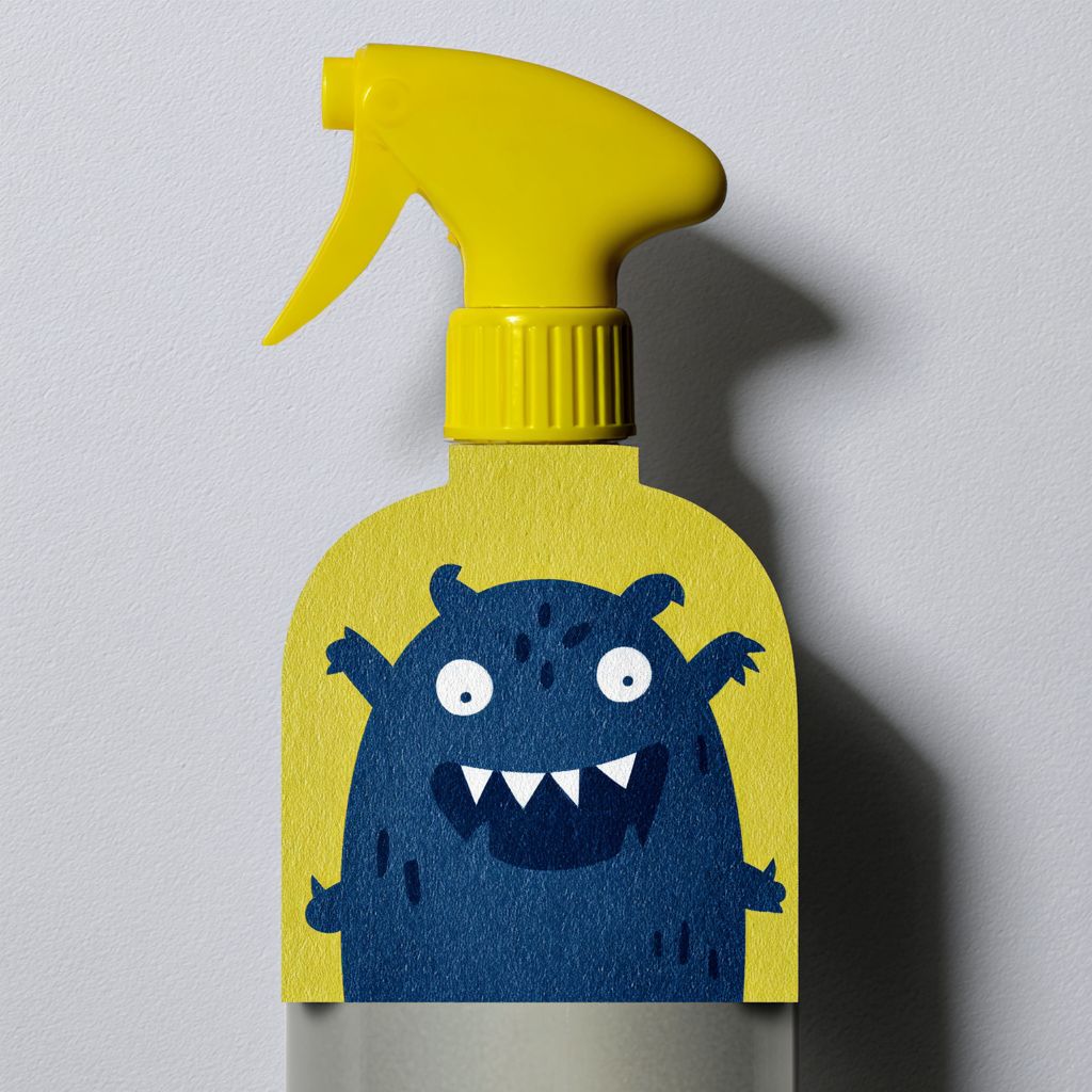 a label for a spray bottle, a spray for children against monsters under the bed --raw --stylize 50