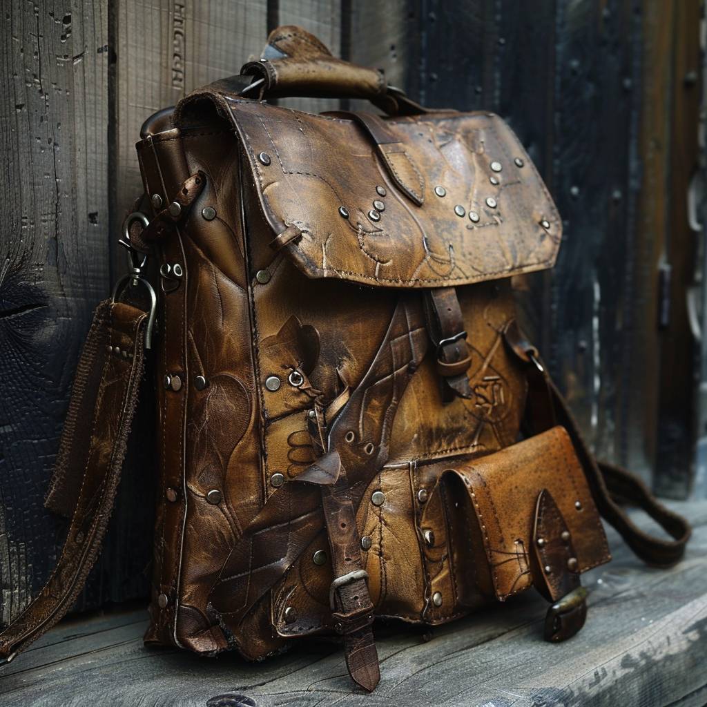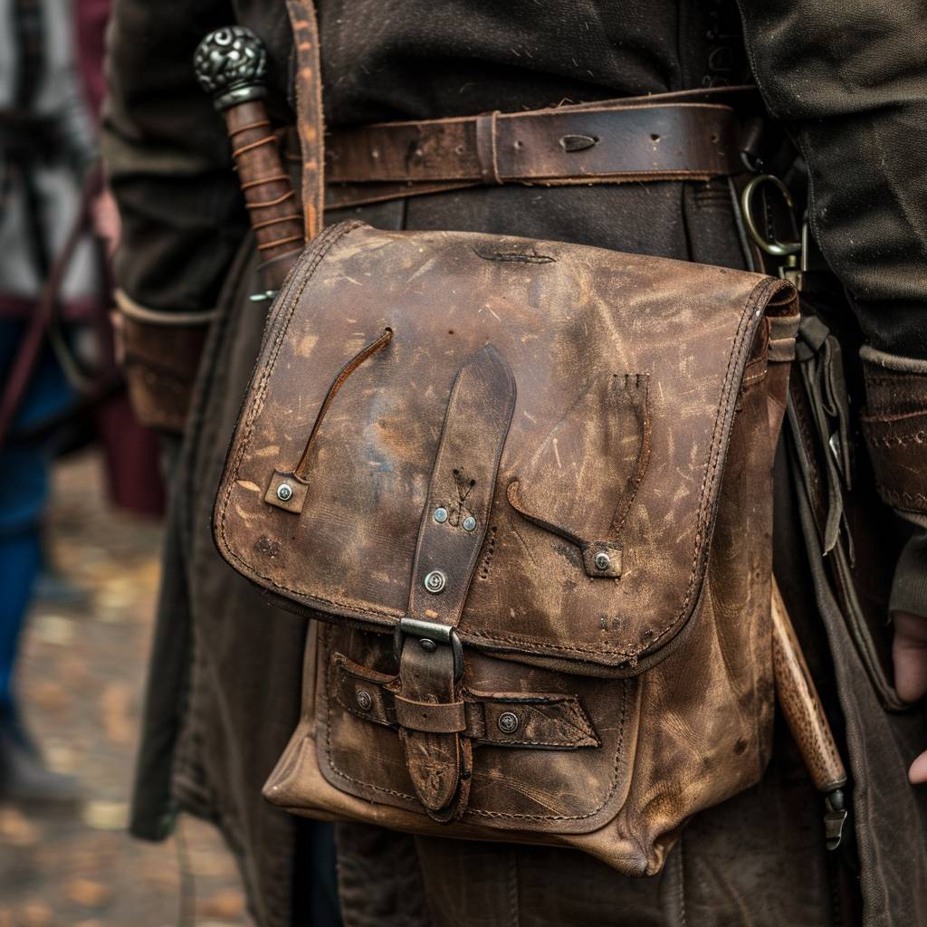 An expensive yet worn medieval brown leather bag, with a magical aura.