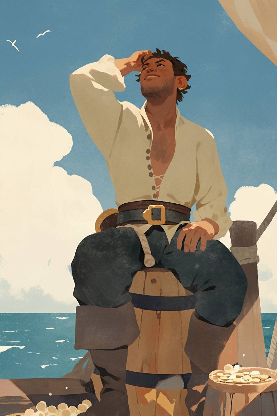 Pirates embark on a grand sailing adventure on the open seas, seeking treasure and the thrill of exploration.