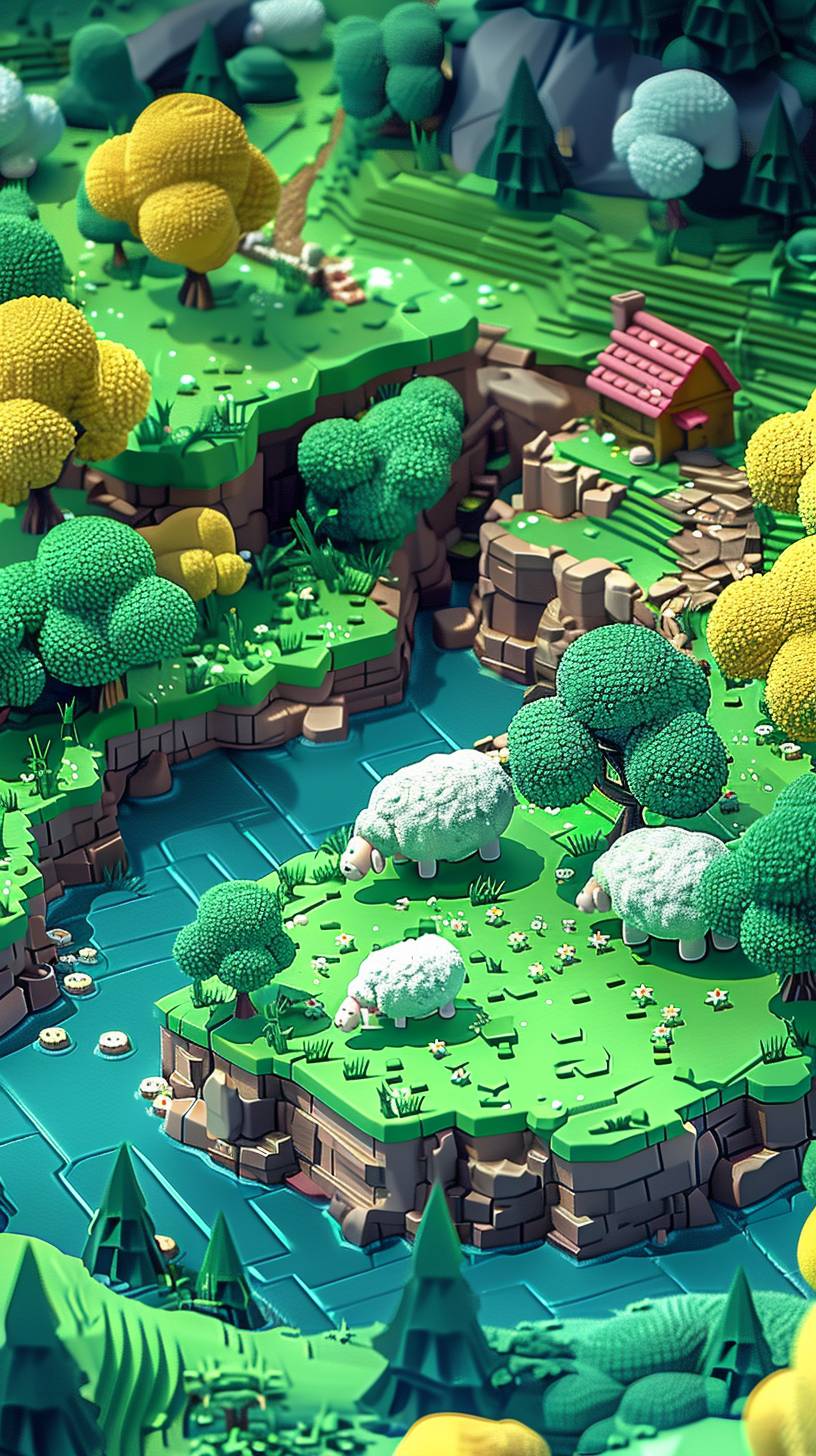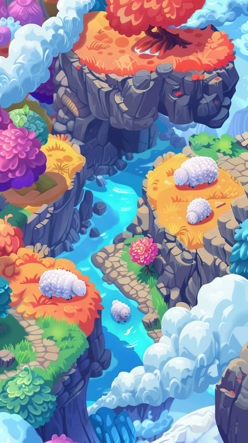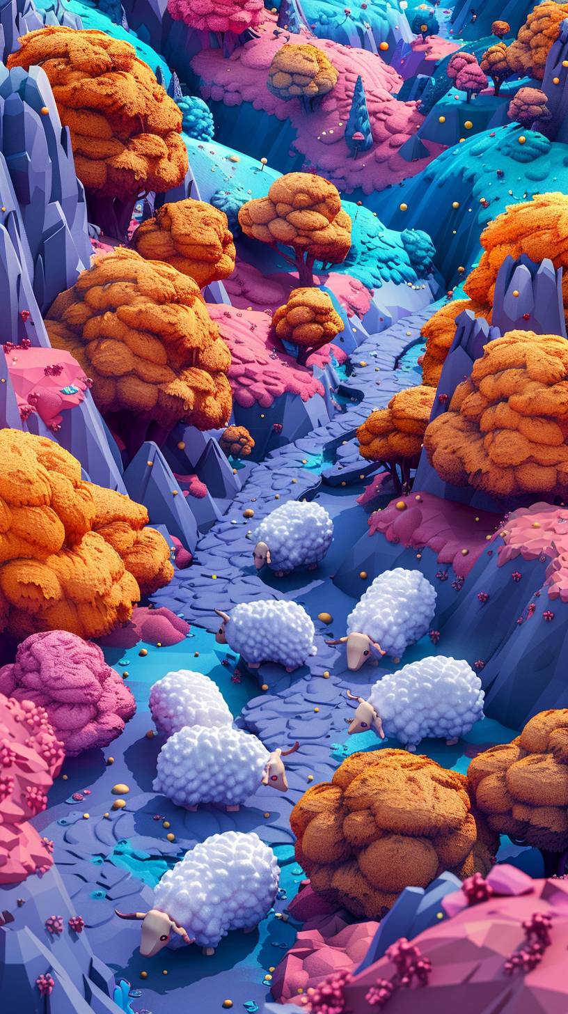 A surreal game featuring sheep with a top-down isometric perspective.