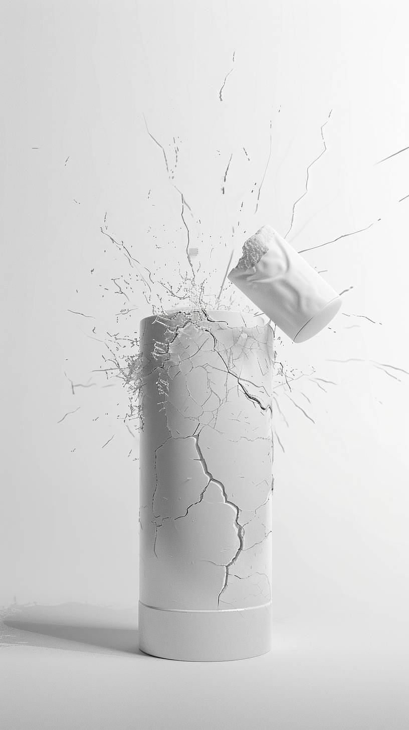 open deodorant stick cracking, solid white backdrop, rtx shader, realism studio lights natural light, dreamlike, hyperrealistic, hyperdetailed, 8k --ar 9:16 --style raw --v 6.0