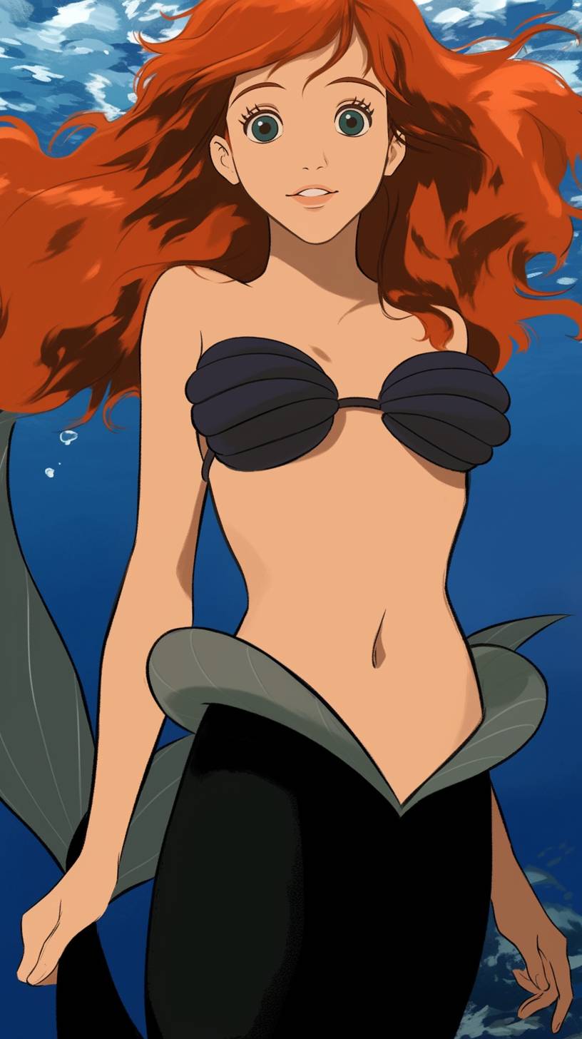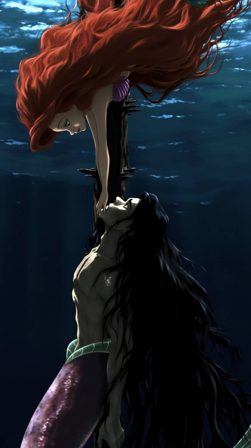 the little mermaid, heavy lines, high contrast, duotone --ar 9:16 --style raw --sref 2642184623 --niji 6