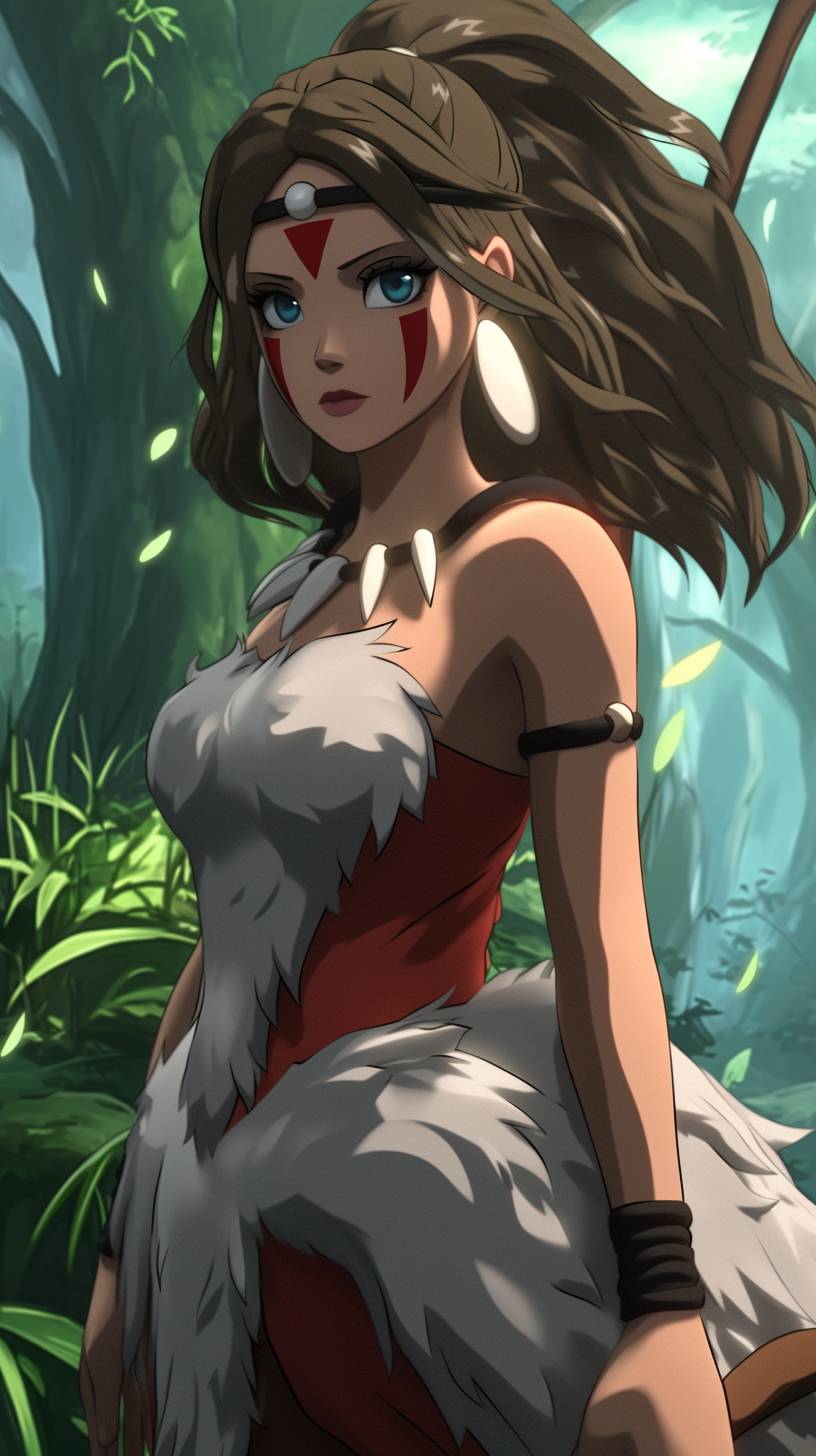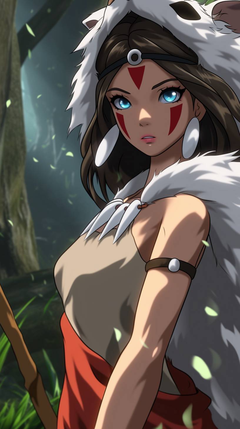 princess mononoke, in the style of high dynamic range, kawaii art, light orange and light bronze, animated illustrations, daz3d, exotic realism, vibrant manga, close-up intensity, japanese-inspired --ar 9:16 --style raw --sref 3661767326 --niji 6