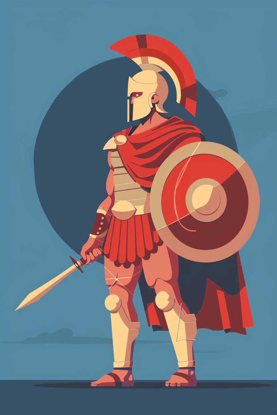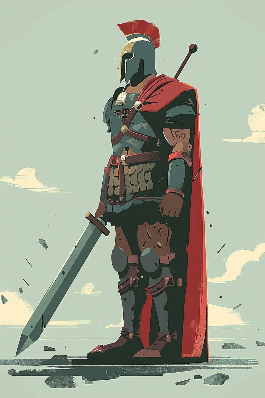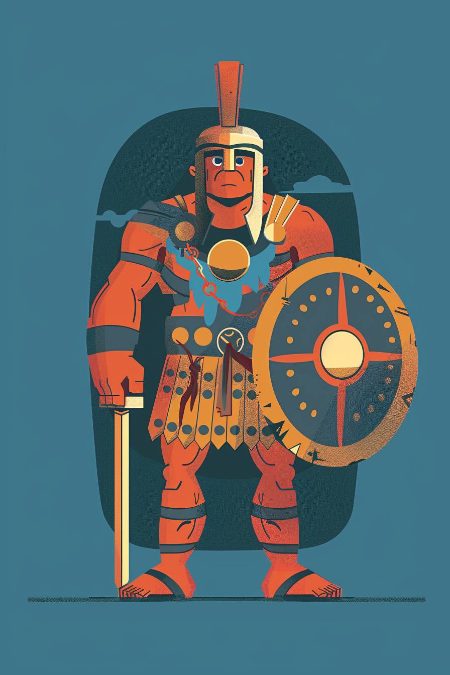Full body illustration of a warrior character in the style of Chris Ware
