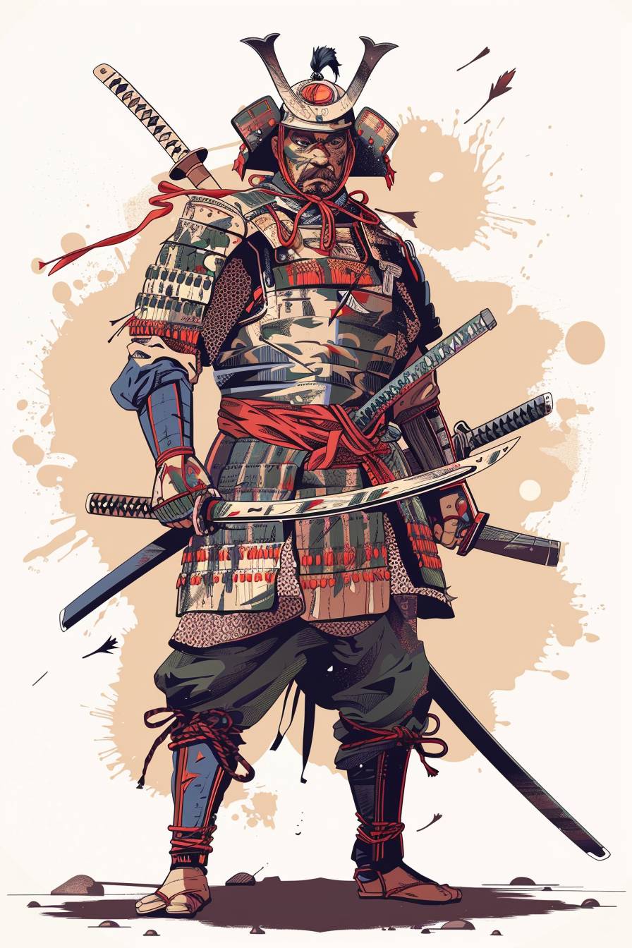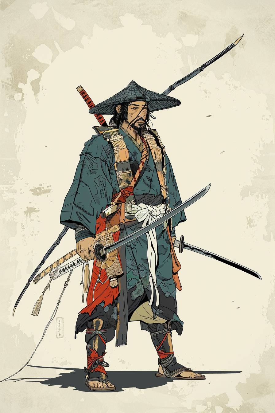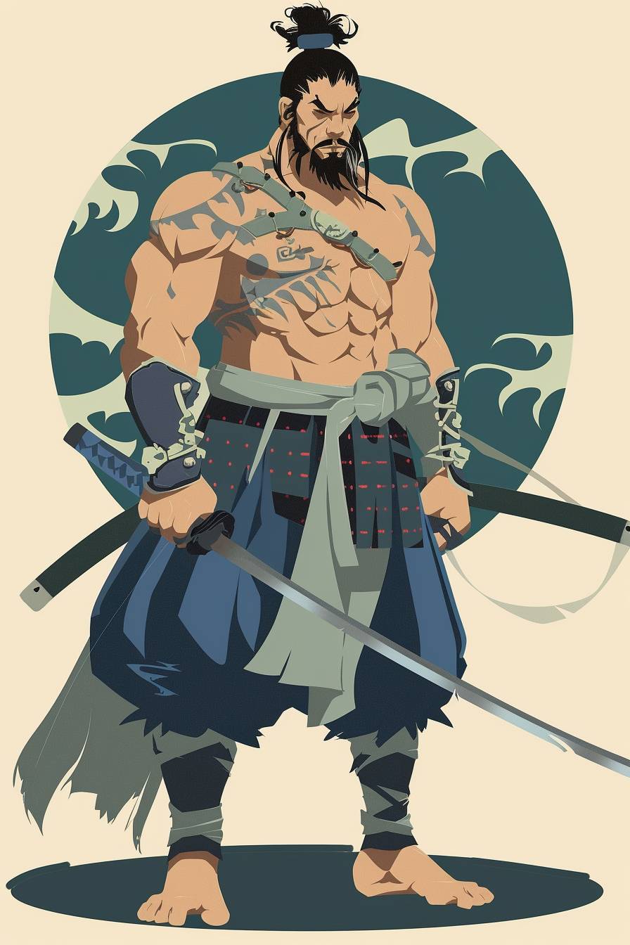Warrior character illustration in the style of Katsushika Hokusai