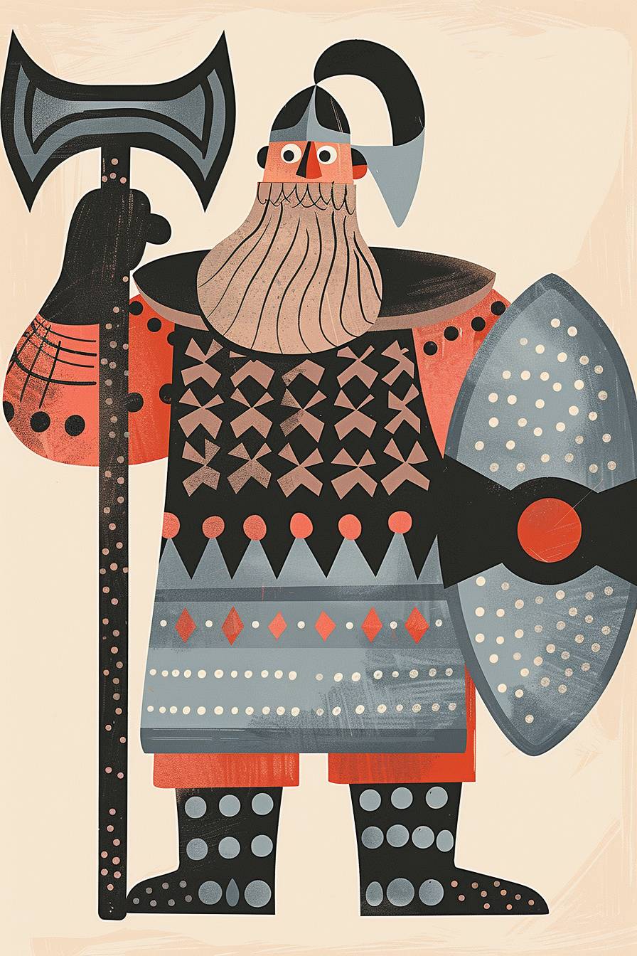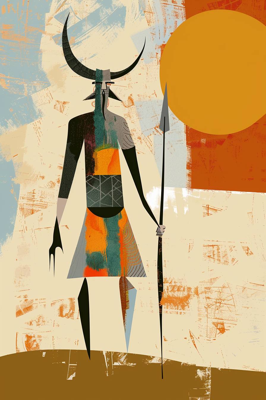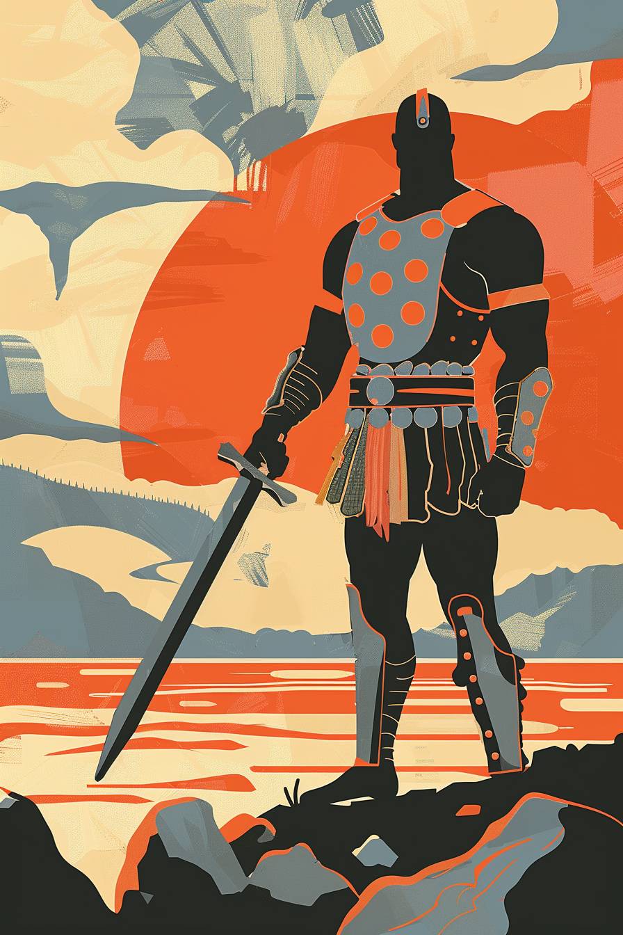 Warrior character in the style of Milton Avery, full body, flat color illustration