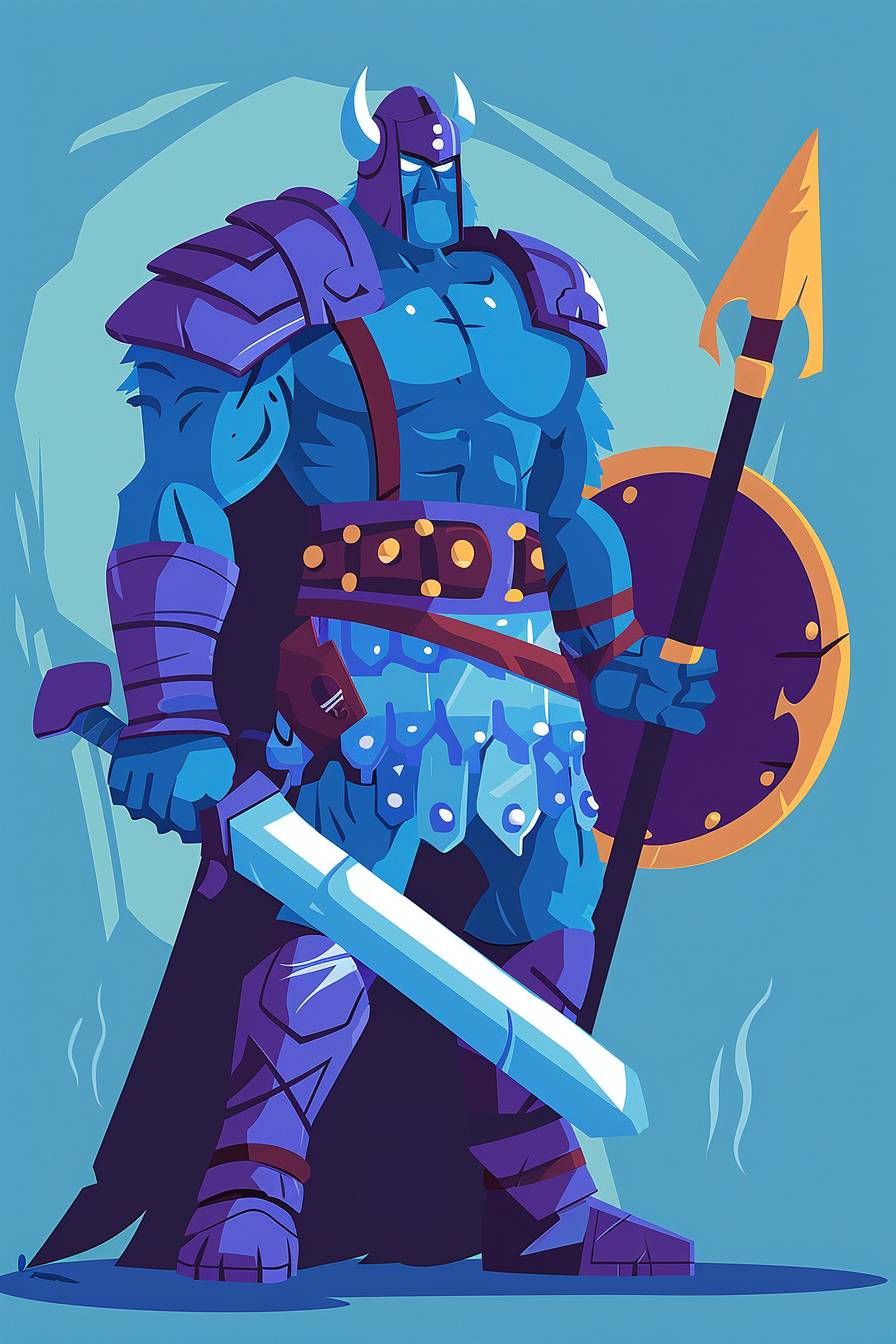 Full body warrior character in flat color illustration