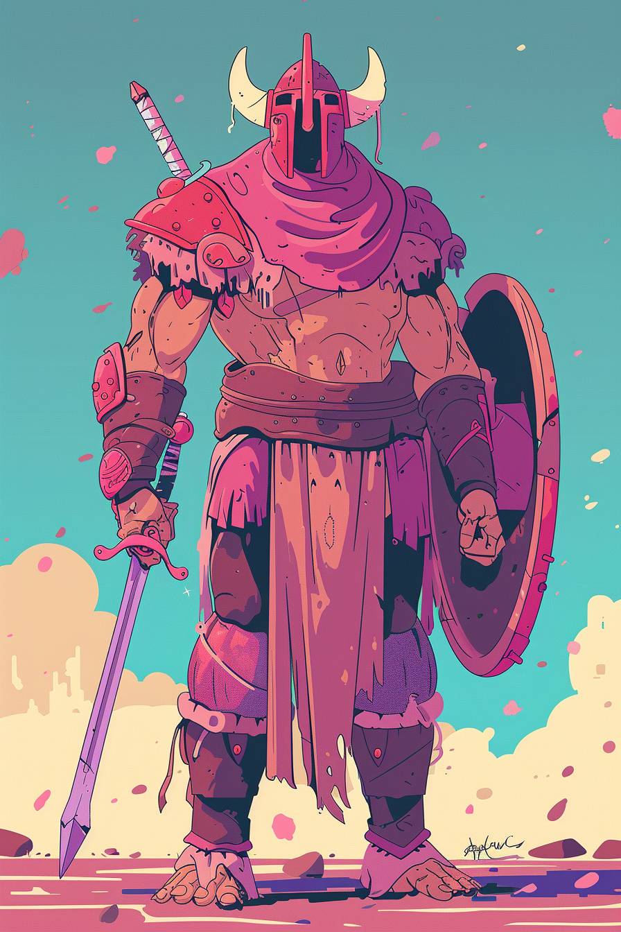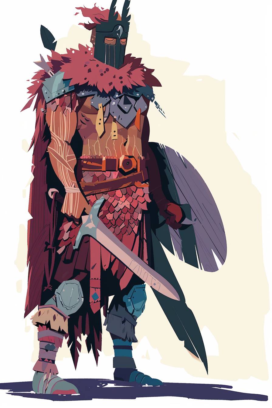 in style of Allie Brosh, warrior character, full body, flat color illustration --ar 2:3 --v 6.0