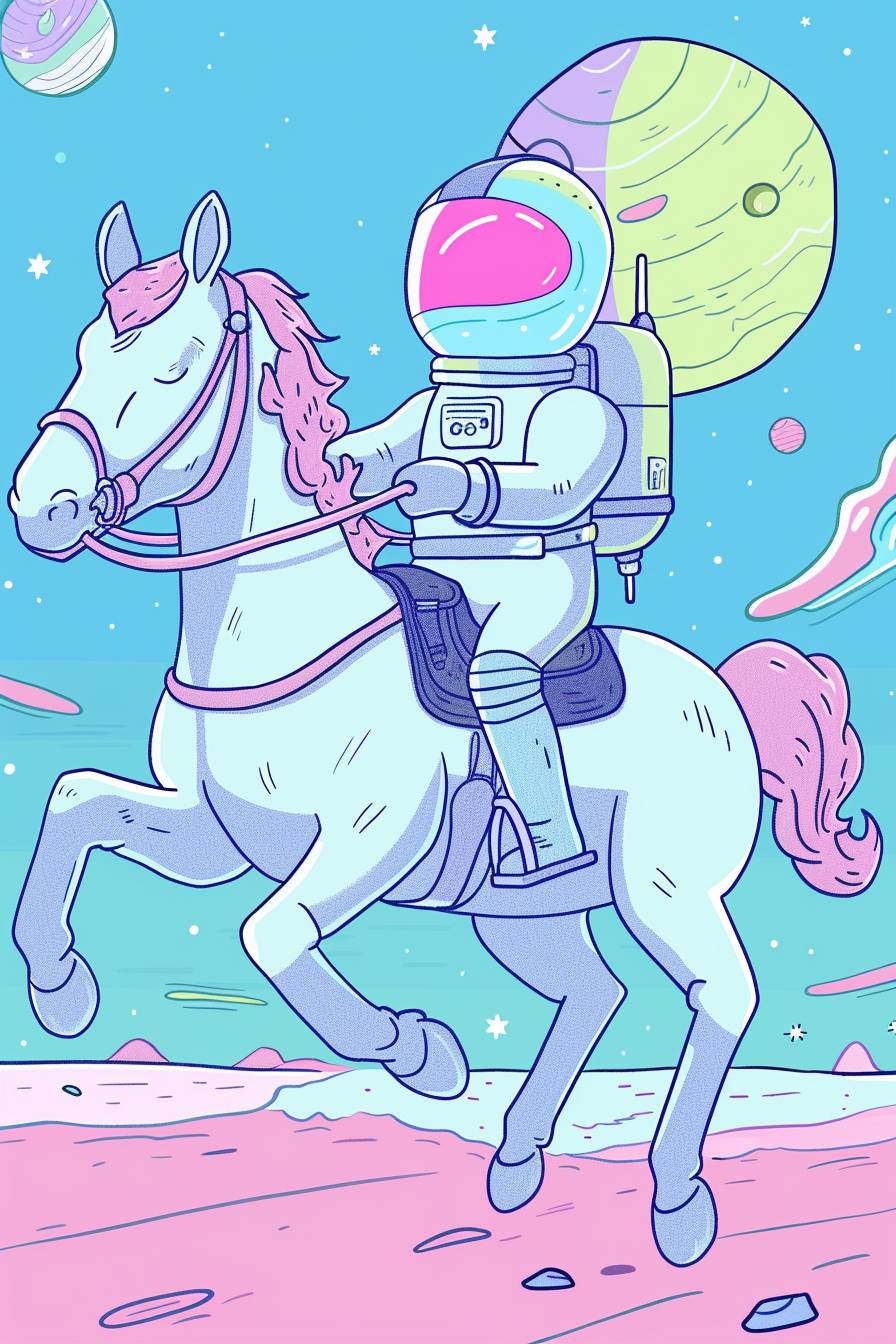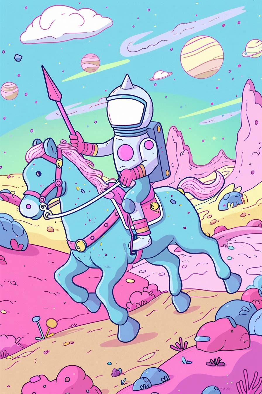 The protagonist depicted by Canadian artist Scott Martin is an interstellar knight: astronauts ride genetically modified horses adapted to the space environment, racing on the asteroid belt. --ar 2:3 --sref <https://s.mj.run/N_4aZ2WMjl8> <https://s.mj.run/WbLG-S6DqrU> <https://s.mj.run/HFTZ_HCbyPo> <https://s.mj.run/kI9Kkedfiro> <https://s.mj.run/KUDz5suzKNY> --v 6.0