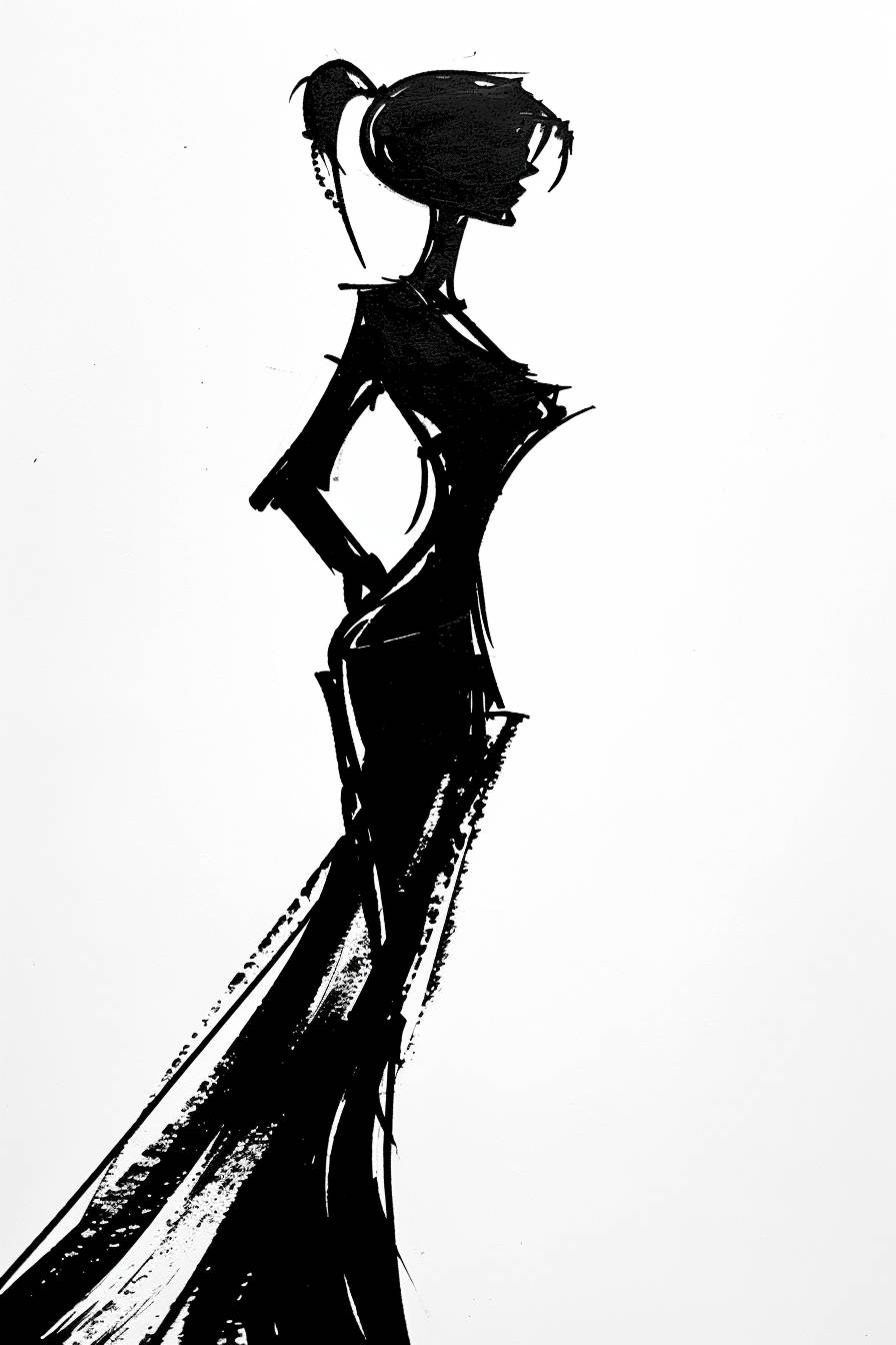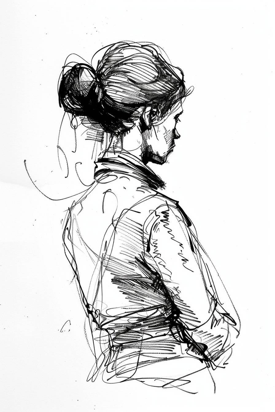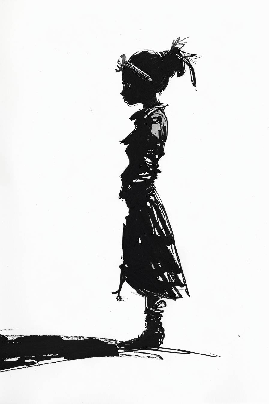 Character ink art in the style of Clarence Gagnon, side view