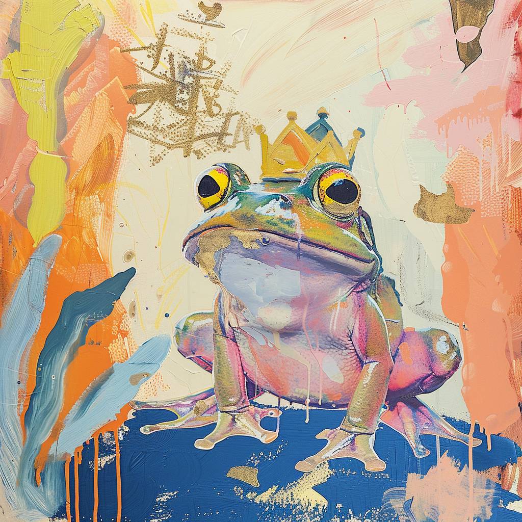 Frog Prince, cartoon creature in the style of Helen Frankenthaler