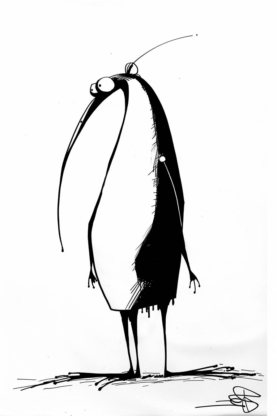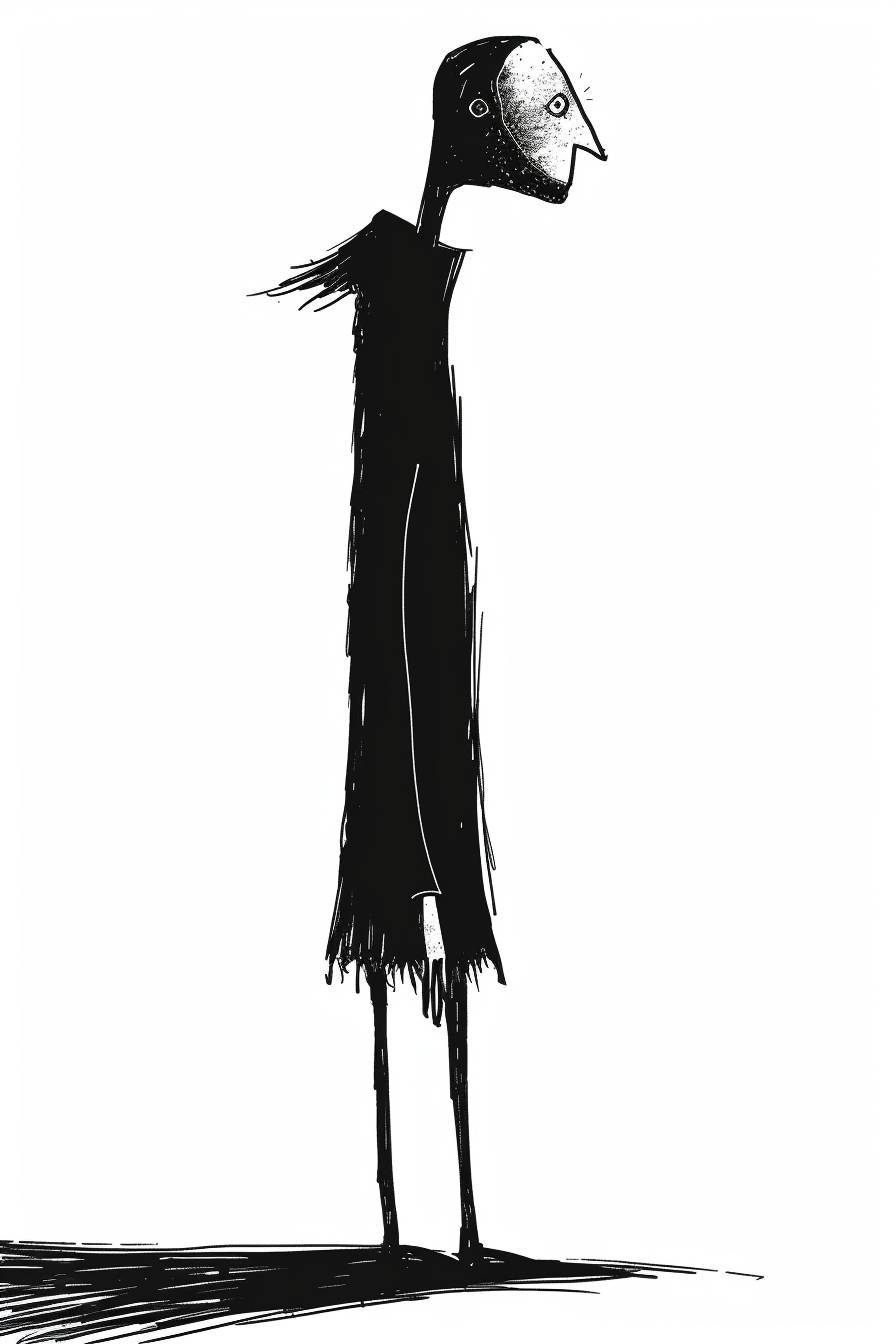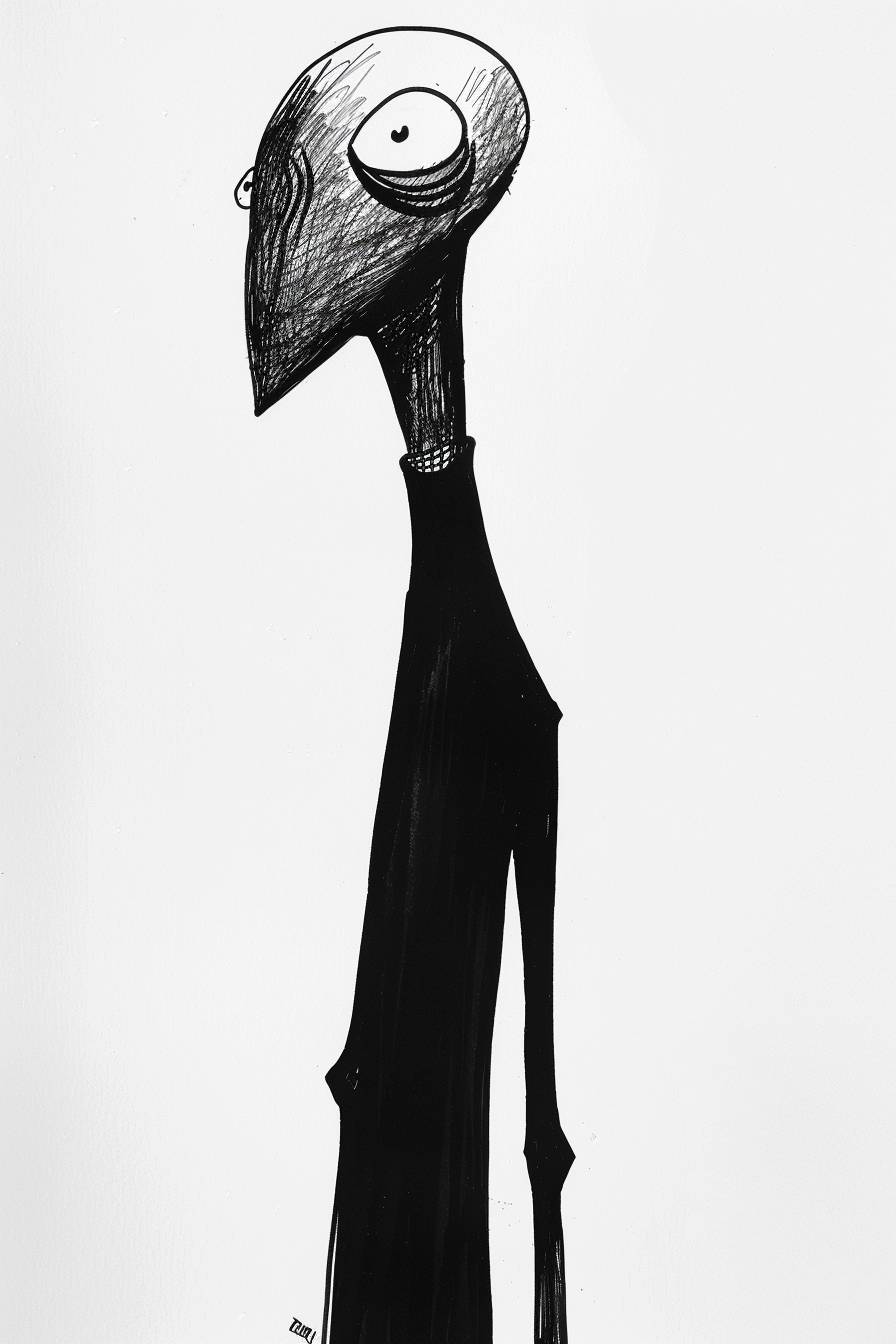 in style of Tomi Ungerer, character, ink art, side view --ar 2:3 --v 6.0