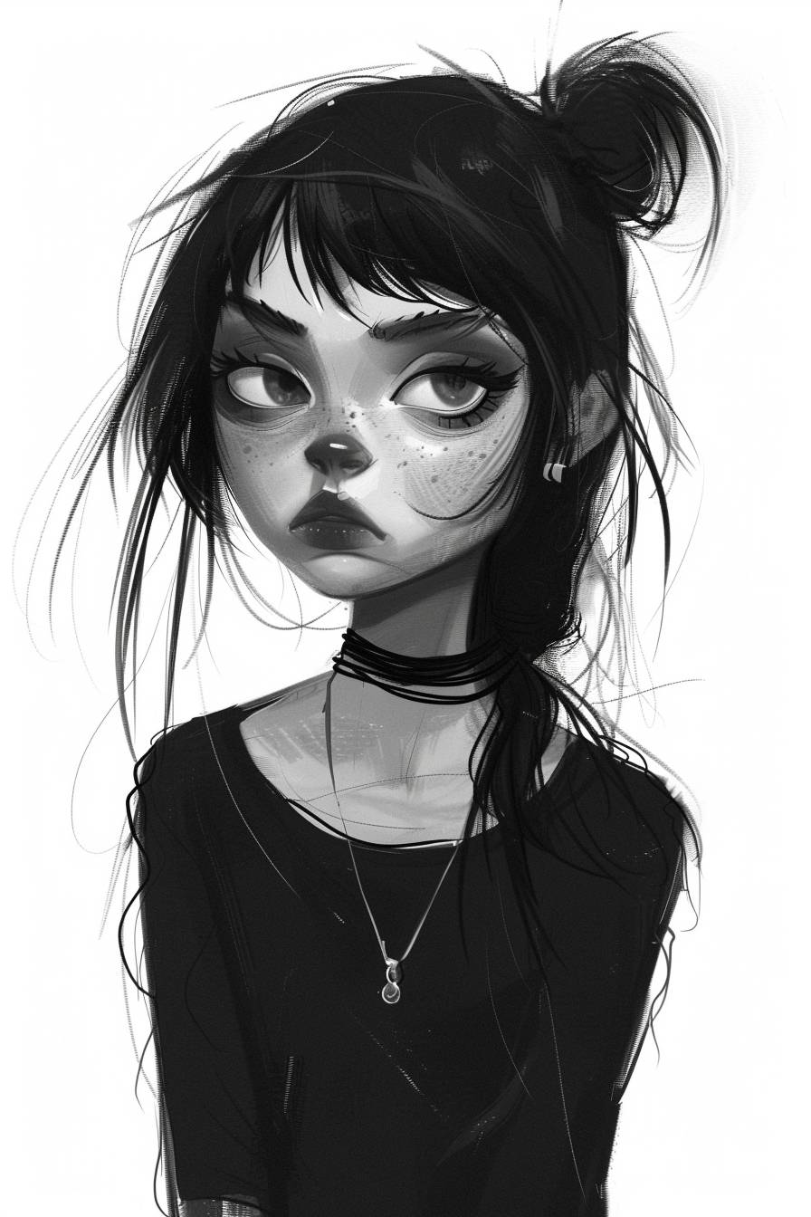 Character concept design in the style of Sarah Andersen, half body
