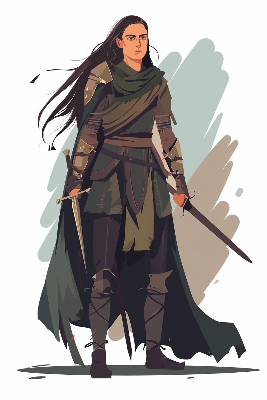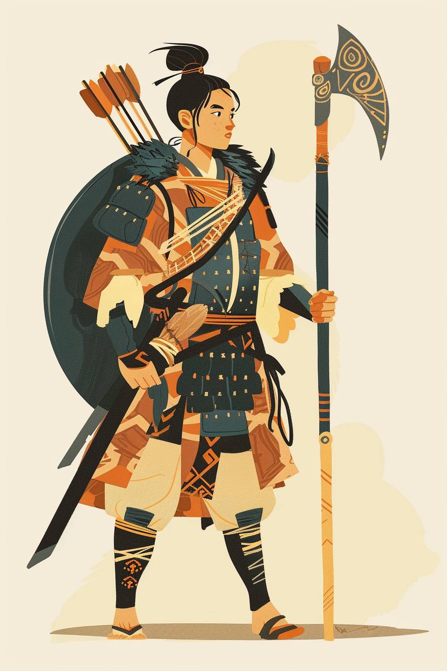 Full body illustration of a warrior character in the style of Berthe Morisot