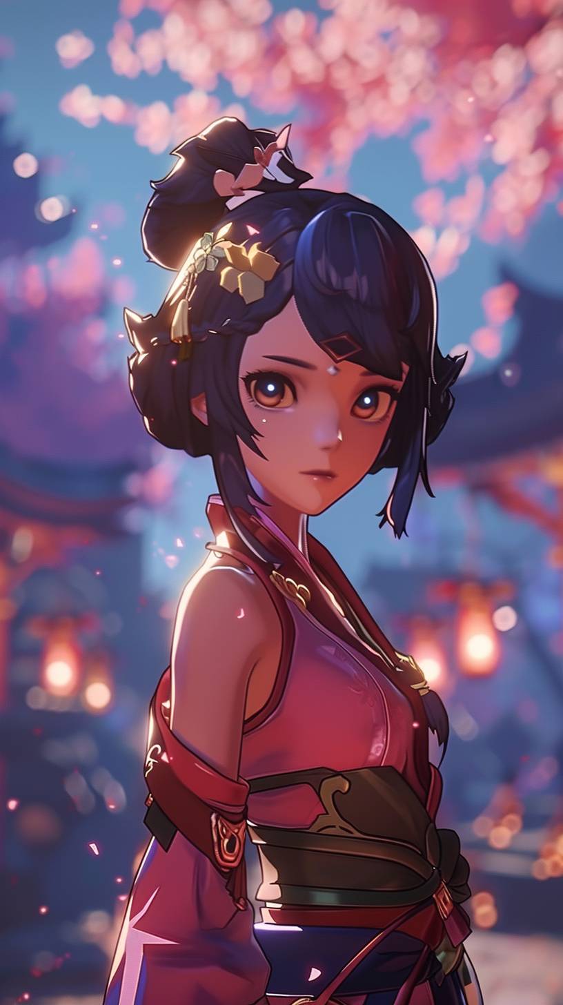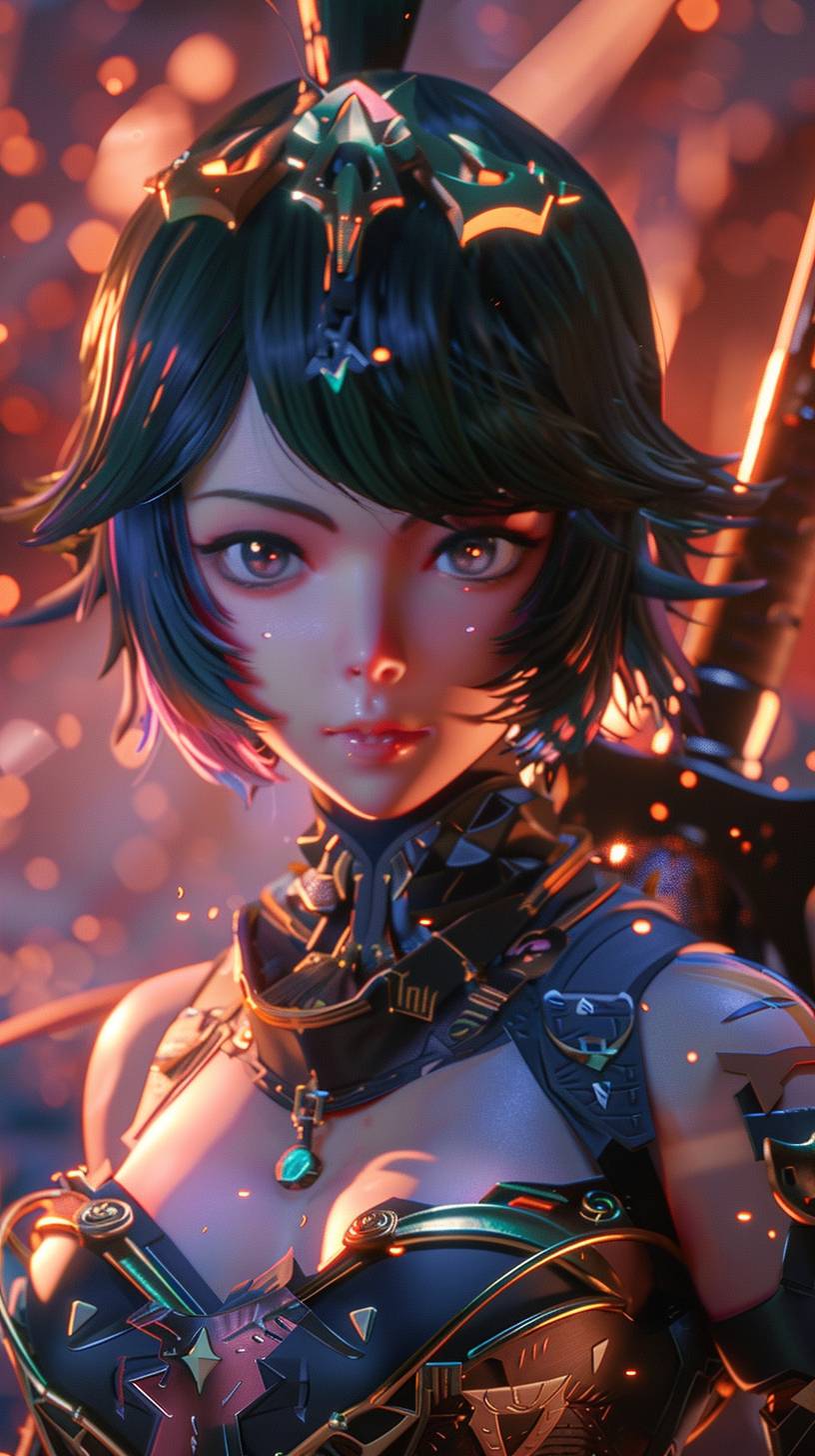 A cinematic still portrait photo of a female hero from Genshin Impact in the Genshin graphics style. --ar 9:16 --style raw --v 6.0