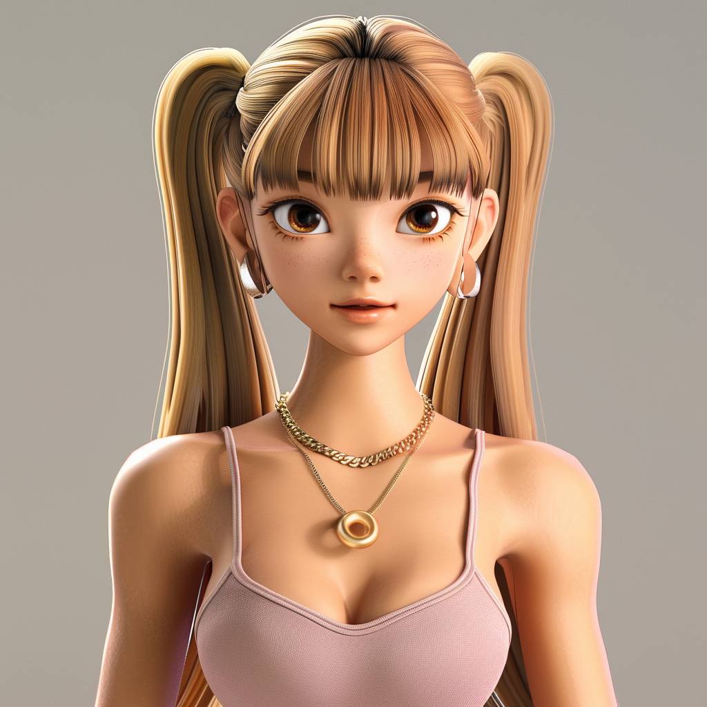 Blackpink member Lisa wearing a strappy tank top, 3D Pixar and Disney style, simple clean background